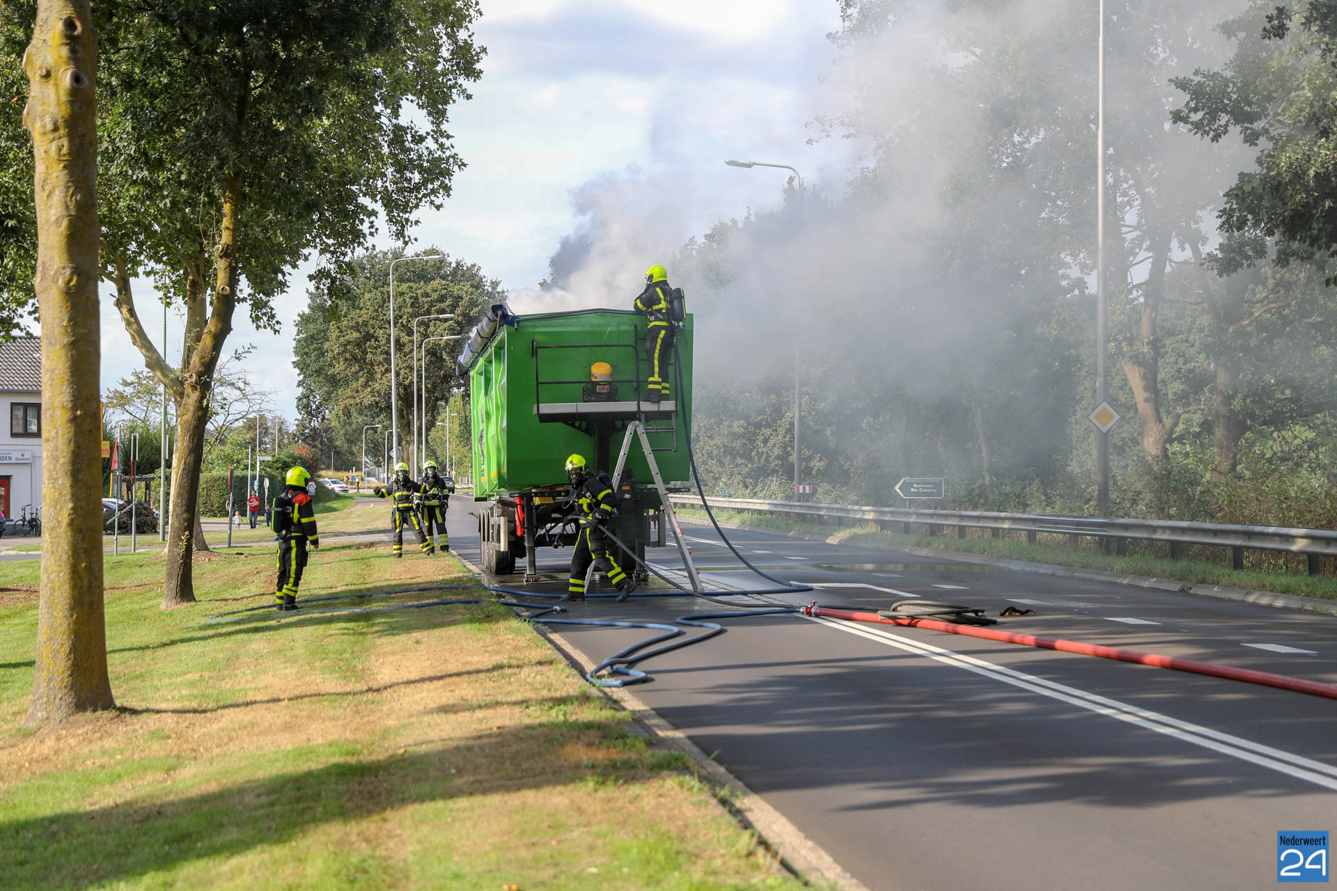 De weg is tijdelijk afgesloten voor het verkeer. De brand is geblust en onder begeleiding zal de chauffeur de oplegger weer aankoppelen en naar een veilige plek rijden. Er raakte niemand gewond.