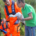 Een vogelspotter zag het dier tijdens zijn dagelijkse rondje. “Toen ik goed keek zag ik een paar keer dat het dier niet meer weg kon vliegen“, aldus de vogelspotter. Daarop belde hij de Dierenambulance. Die kon echter niet bij het dier komen en dus werd de brandweer ingeschakeld.