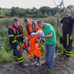 Met een speciaal pak liep de brandweer door het water en heeft het dier opgehaald. Eenmaal terug zagen ze dat het dier een gebroken poot heeft. De vogel werd daarna overgedragen aan de dierenambulance en wordt onderzocht.