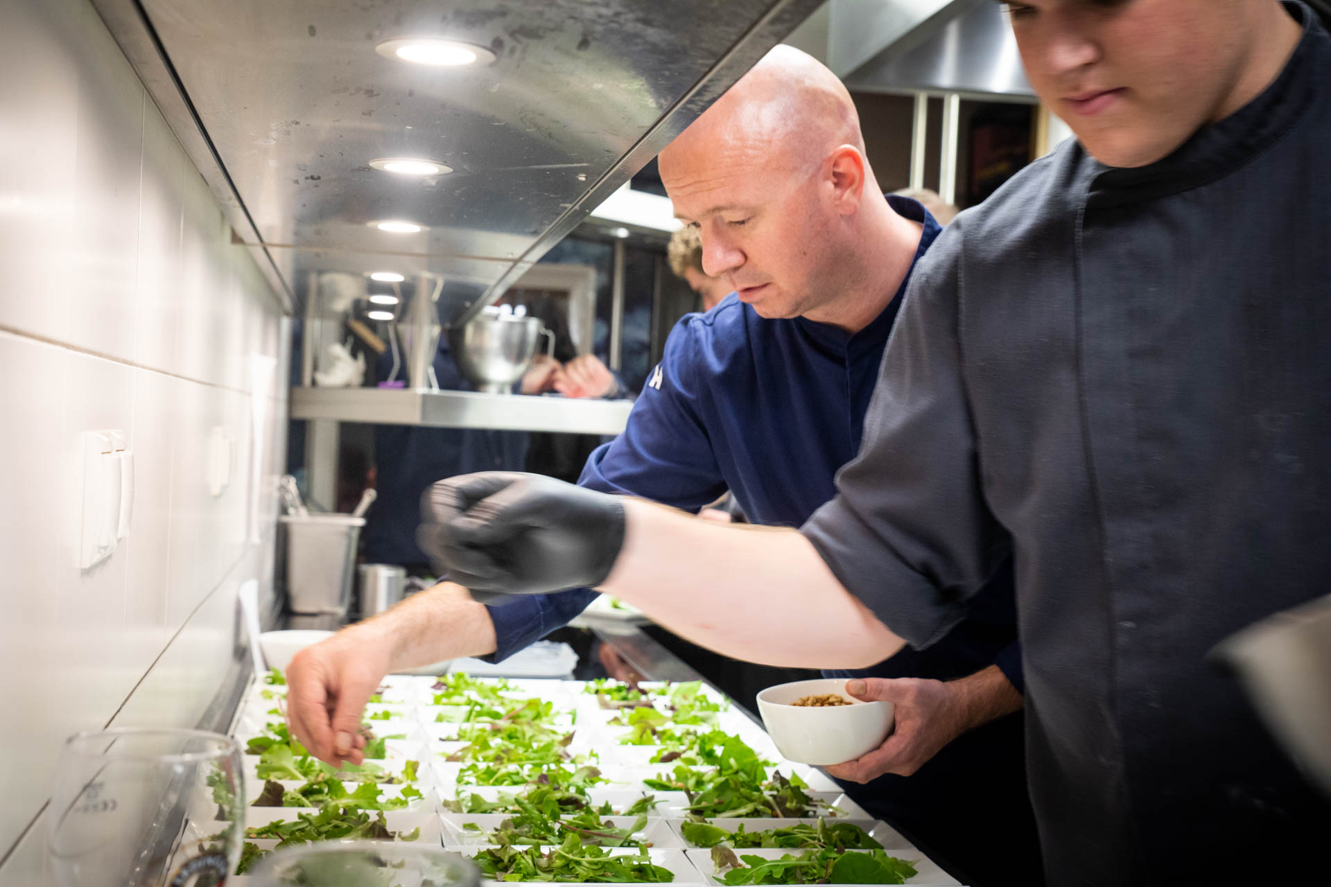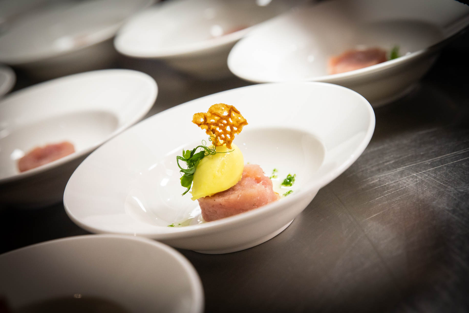 Zoals gezegd bestond de avond uit een 7-gangen diner, waarbij elke gang voorzien was van een element bestaande uit ijs. Gasten werden verrast met heerlijke combinaties en bijzondere ijssmaken. Denk aan geitenkaas-ijs, watermeloen-madame jeanette ijs, een tonijn tartaar met picallilly-ijs en, mijn persoonlijke favoriet, de carpaccio met truffelmayonaise parfait. Telkens wisten de twee overburen uit de Brugstraat smakelijke gerechten op tafel te zetten.
