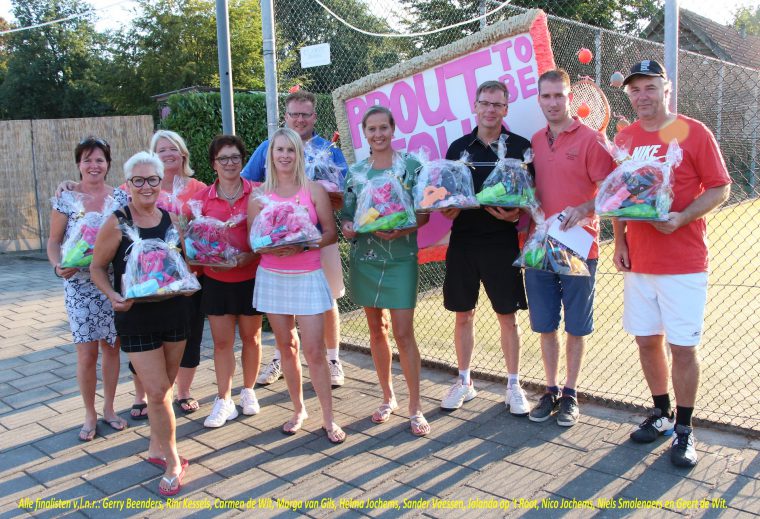 De weersomstandigheden waren weer prima en iedereen heeft kunnen genieten van een prachtig en gezellig toernooi. Het thema dit jaar was “Prout to be foud” en dat was natuurlijk duidelijk te merken aan aankleding van de kantine, het tennispark en ook de muziek. Veel leden hebben aan dit alles hun vrijwillige bijdrage geleverd. Ook voor een hapje en een drankje was weer prima gezorgd. Hoveniersbedrijf Dennis Hermans was ook dit jaar weer hoofdsponsor van dit toernooi.