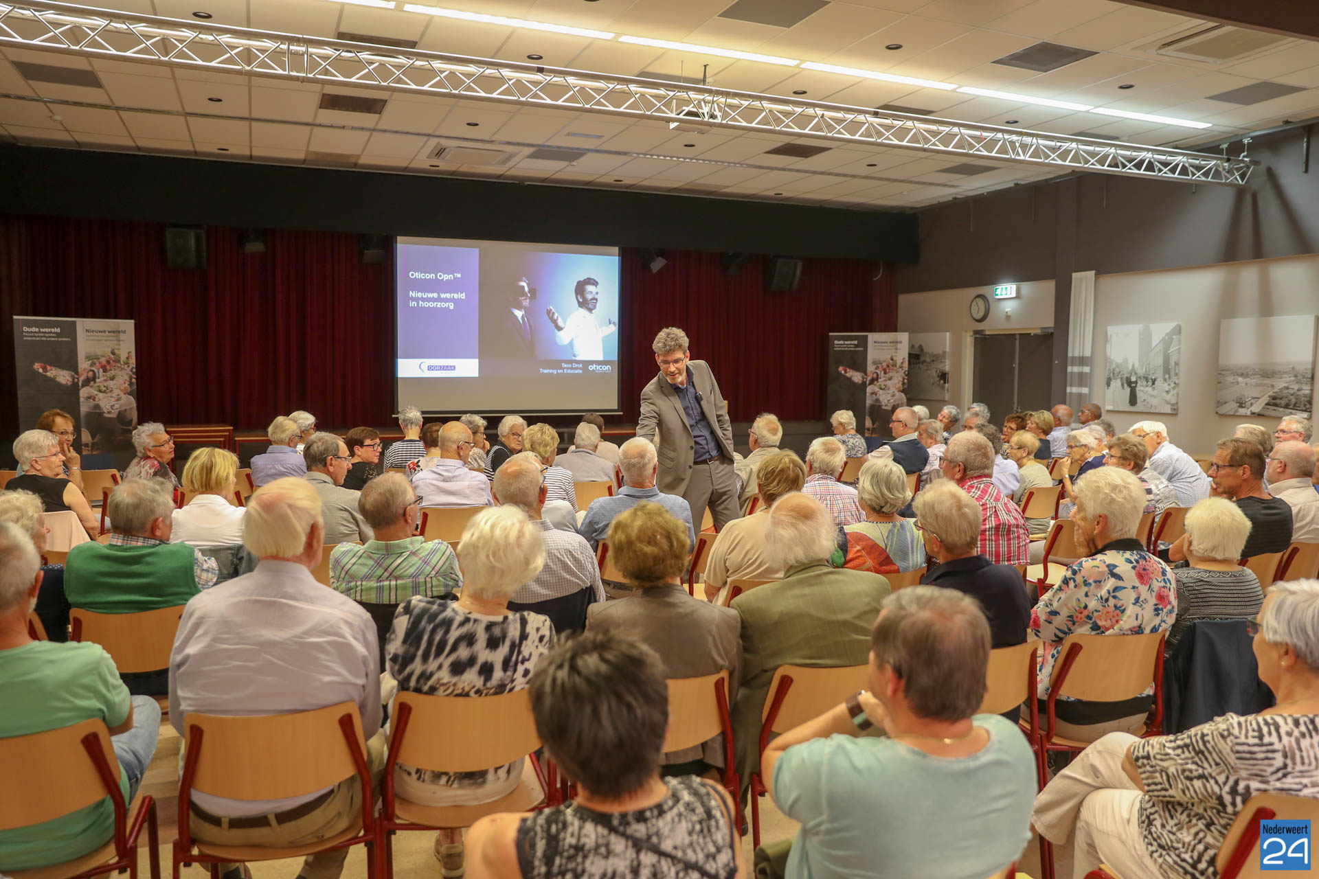 Met de ontwikkeling van dit gehoorapparaat durft de fabrikant voor het eerst te zeggen dat zij héél dicht bij weer normaal horen zijn gekomen. Ruim 125 genodigden waren onder de indruk van de lezing en hebben genoten van een geslaagde zeer informatieve bijeenkomst in De Pinnenhof.