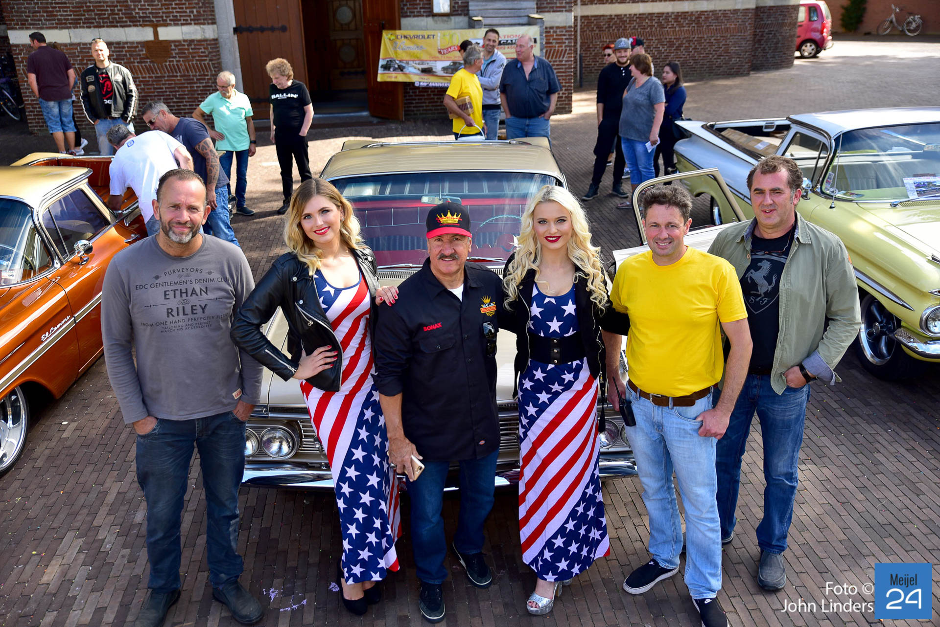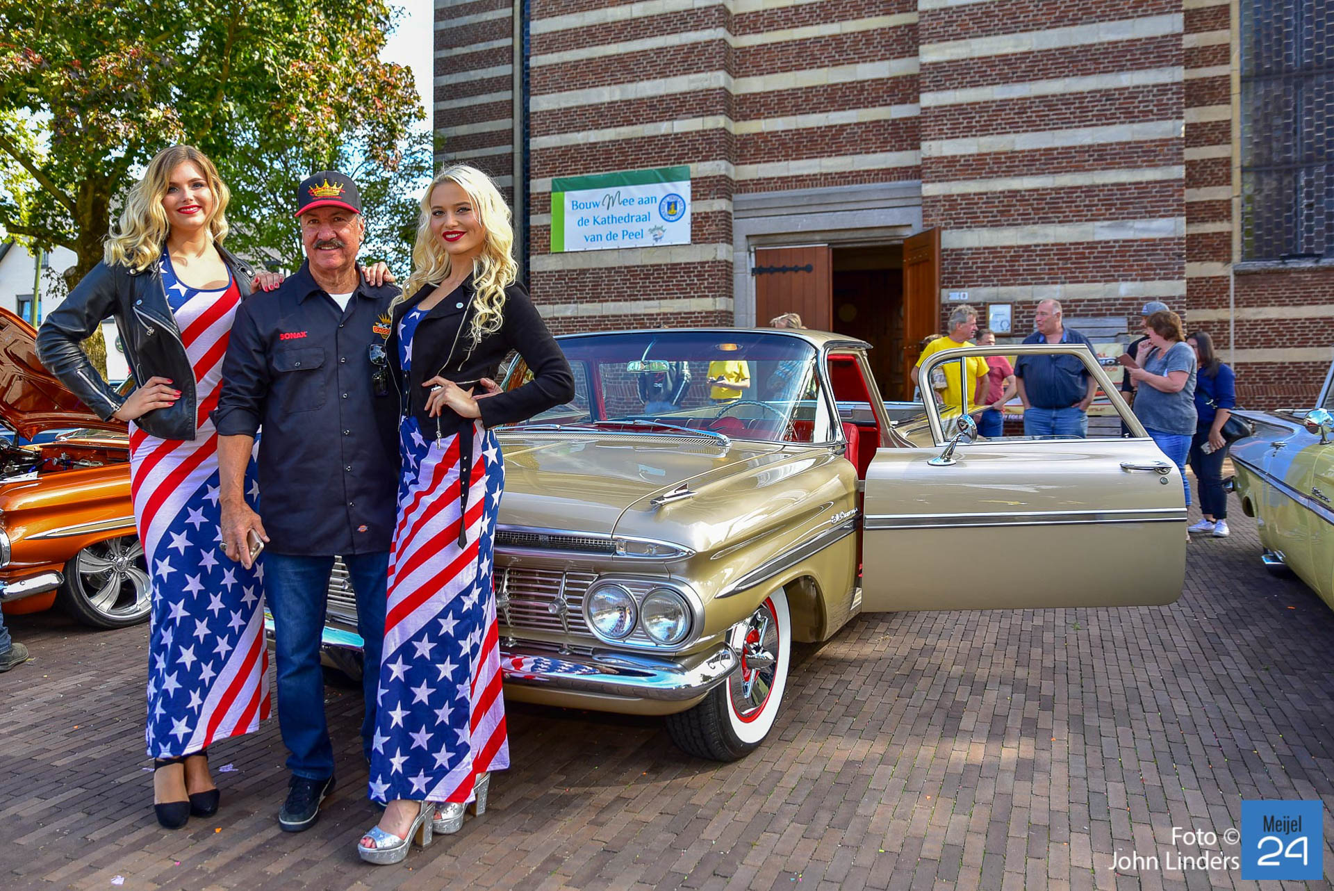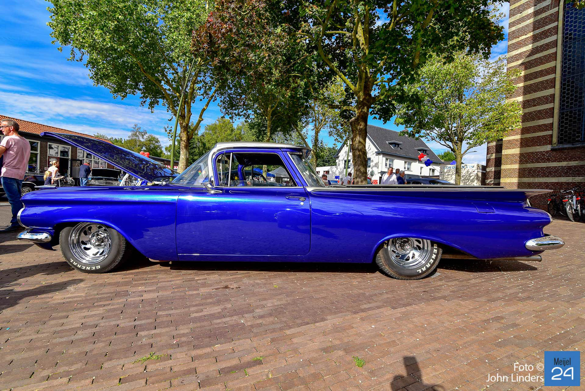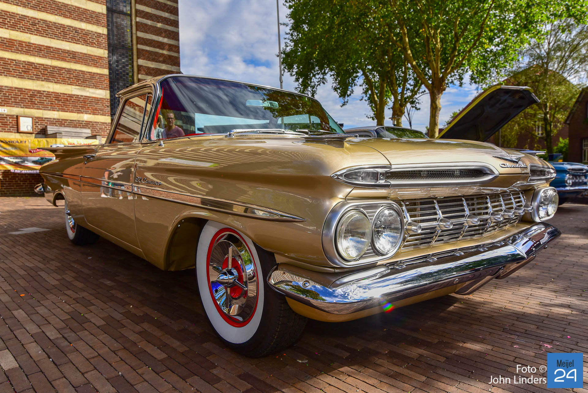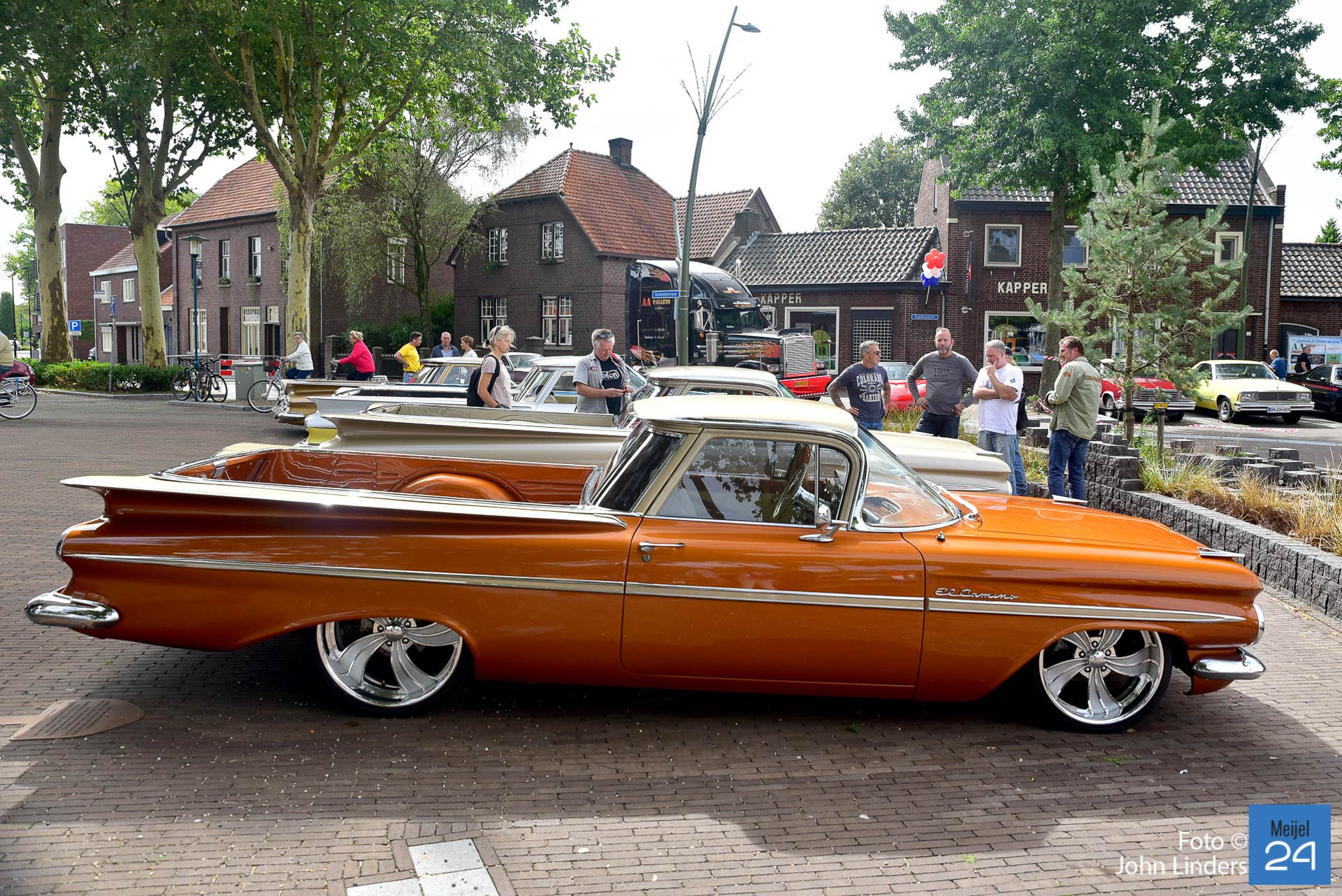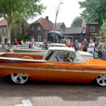De 17e El Camino Meijel meeting was weer een groot succes. Op zaterdag en zondag kwamen maar liefst 92 Chevrolet El Camino’s in diverse kleuren en jaartallen naar het centrum van Meijel. El Camino’s uit Nederland, België, Duitsland, Noorwegen, Engeland en the USA. Voor de kerk op het plein was een plekje gereserveerd voor de juweeltjes uit 1959. Rond om het centrum en in de Dorpstraat stonden de ca. 250 USA cars van de bezoekers die in grote getalen gekomen waren. Voor het tweede jaar was vanuit Discovery Bay California, John D’Agostino van Celebrity Kustoms overgevlogen om deze meeting te bezoeken. Mister John himself koos voor hem de mooiste El Camino uit en deze werd beloond met de Award of Excellence. De campagne kleurige El Camino uit 1959 werd hiervoor uitgekozen.
