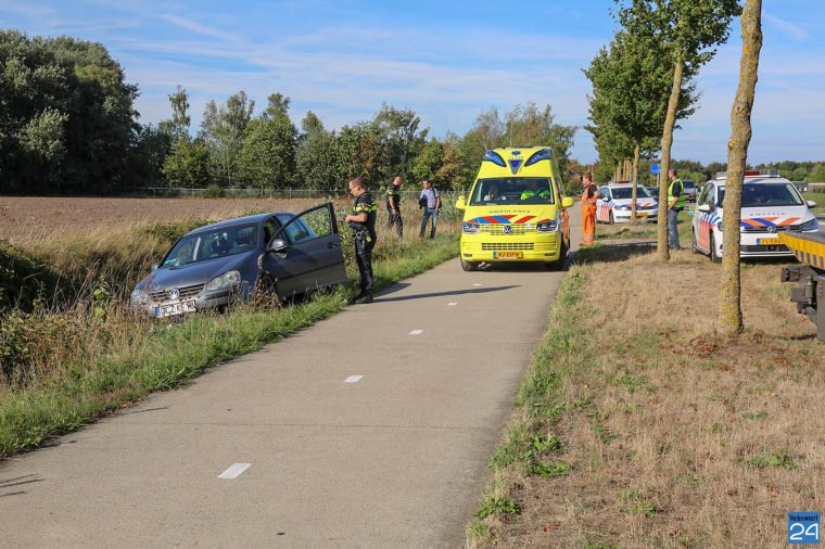 Door nog onbekende oorzaak raakte een personenauto naast de weg en kwam op het fietspad terecht. Hierbij raakte hij de fietser. De personenauto én de fiets kwamen vervolgens in de berm naast het fietspad tot stilstand.