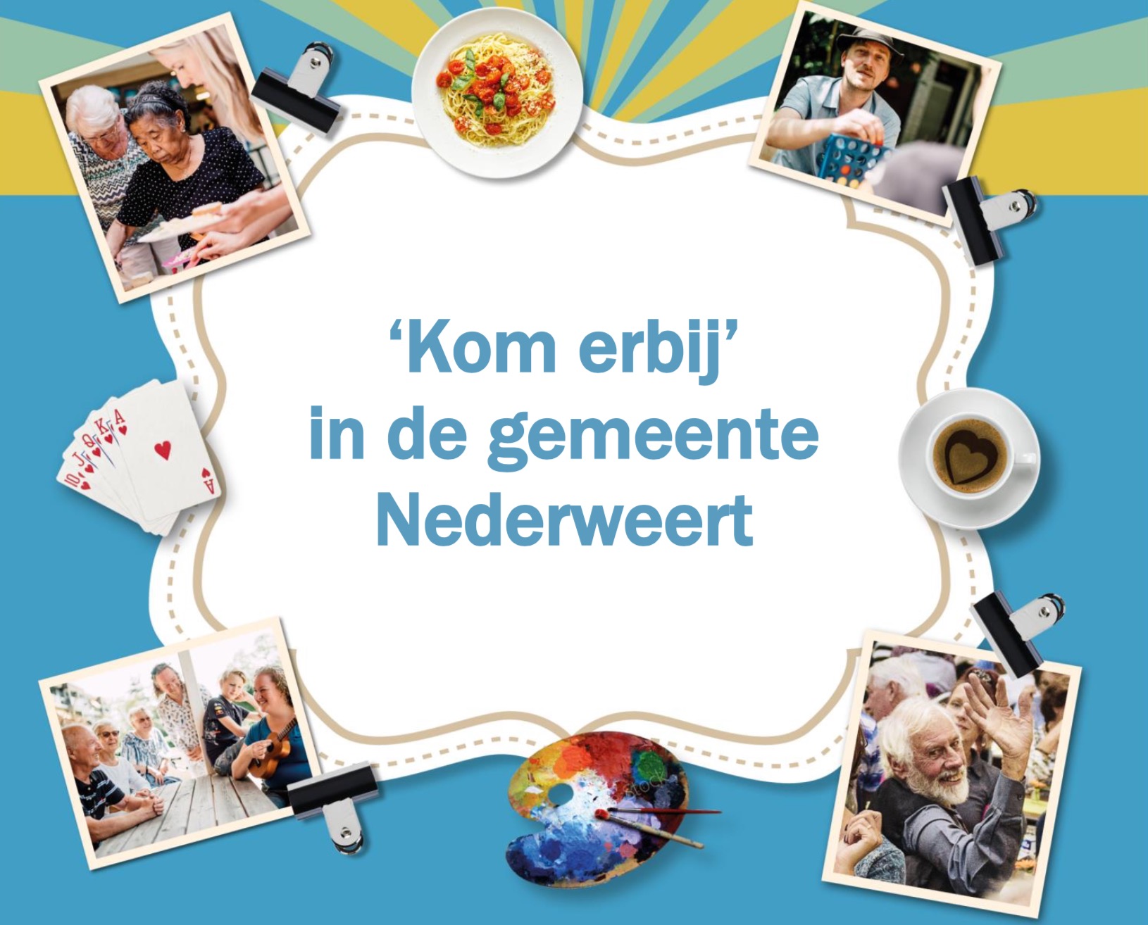 Gemeente Nederweert staat van 27 september tot en met 7 oktober 2018 in het teken van ‘Kom erbij’. Een week vol leuke en gezellige activiteiten. Nieuwe ontmoetingen en mee kunnen doen staan centraal. Daarnaast is er aandacht voor het gevoel (soms) alleen te zijn. In de kernen zijn een tal van verschillende activiteiten georganiseerd. Ze nodigen inwoners, vrijwilligers en organisaties uit: Kom erbij!