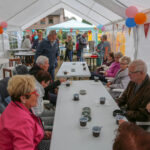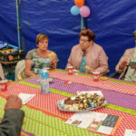 Ook bij buurtvereniging De Houwakker was het een gezellige boel. In de tent kon men genieten van koffie/thee, een pilsje en een plakje cake. De jeugd vermaakte zich op het springkussen in de speeltuin.