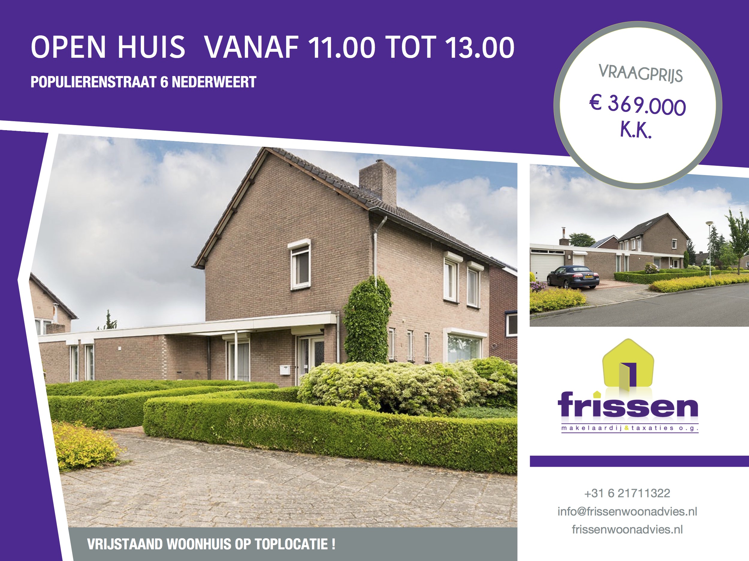 Morgen ben je van harte welkom op de Populierenstraat 6 in Nederweert voor een vrijblijvende bezichtiging tijdens de Open Huizen Route dag. Loop even binnen en laat je ook overtuigen van de mogelijkheden van deze woning. Een afspraak maken is morgen niet nodig.