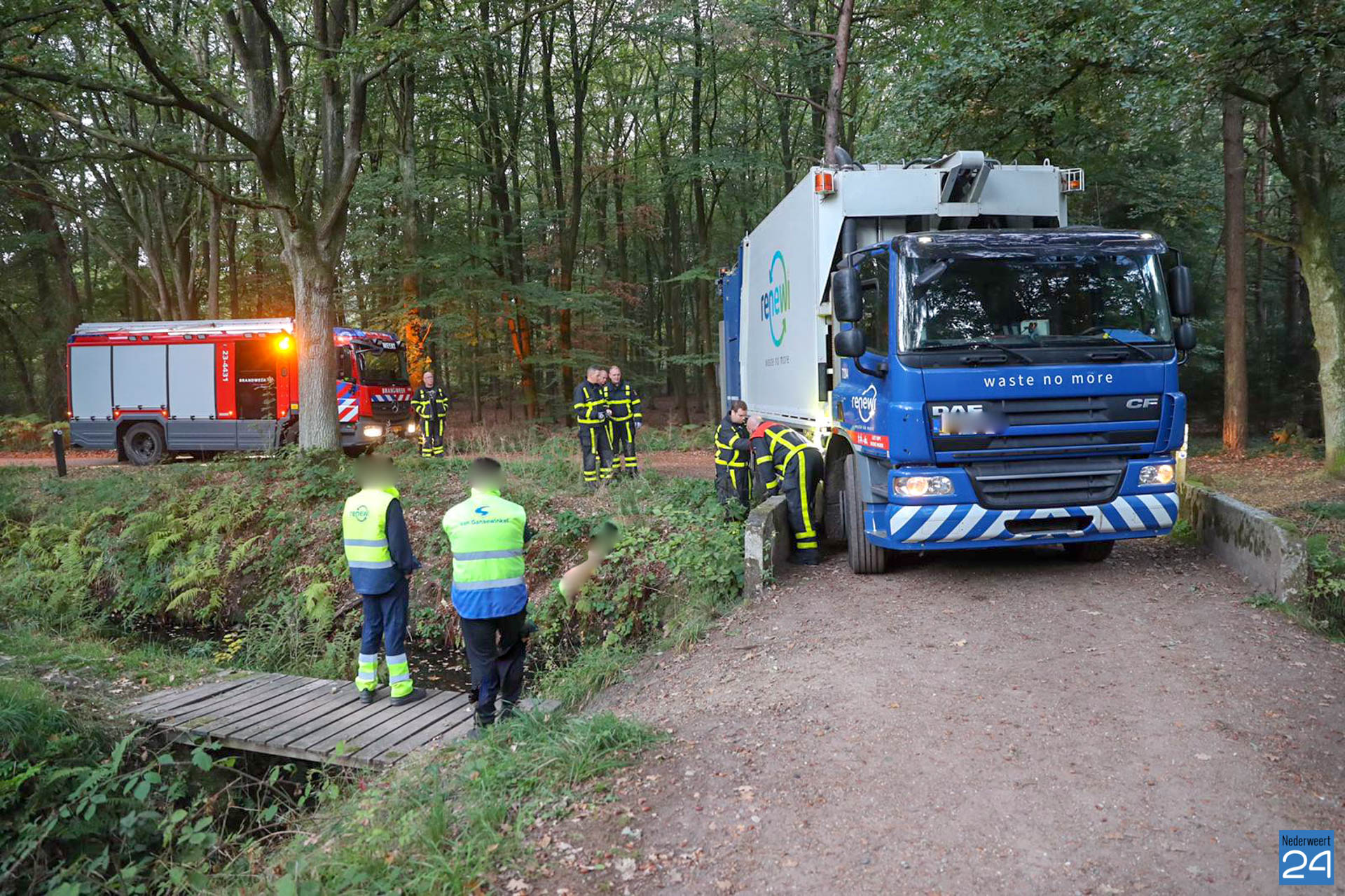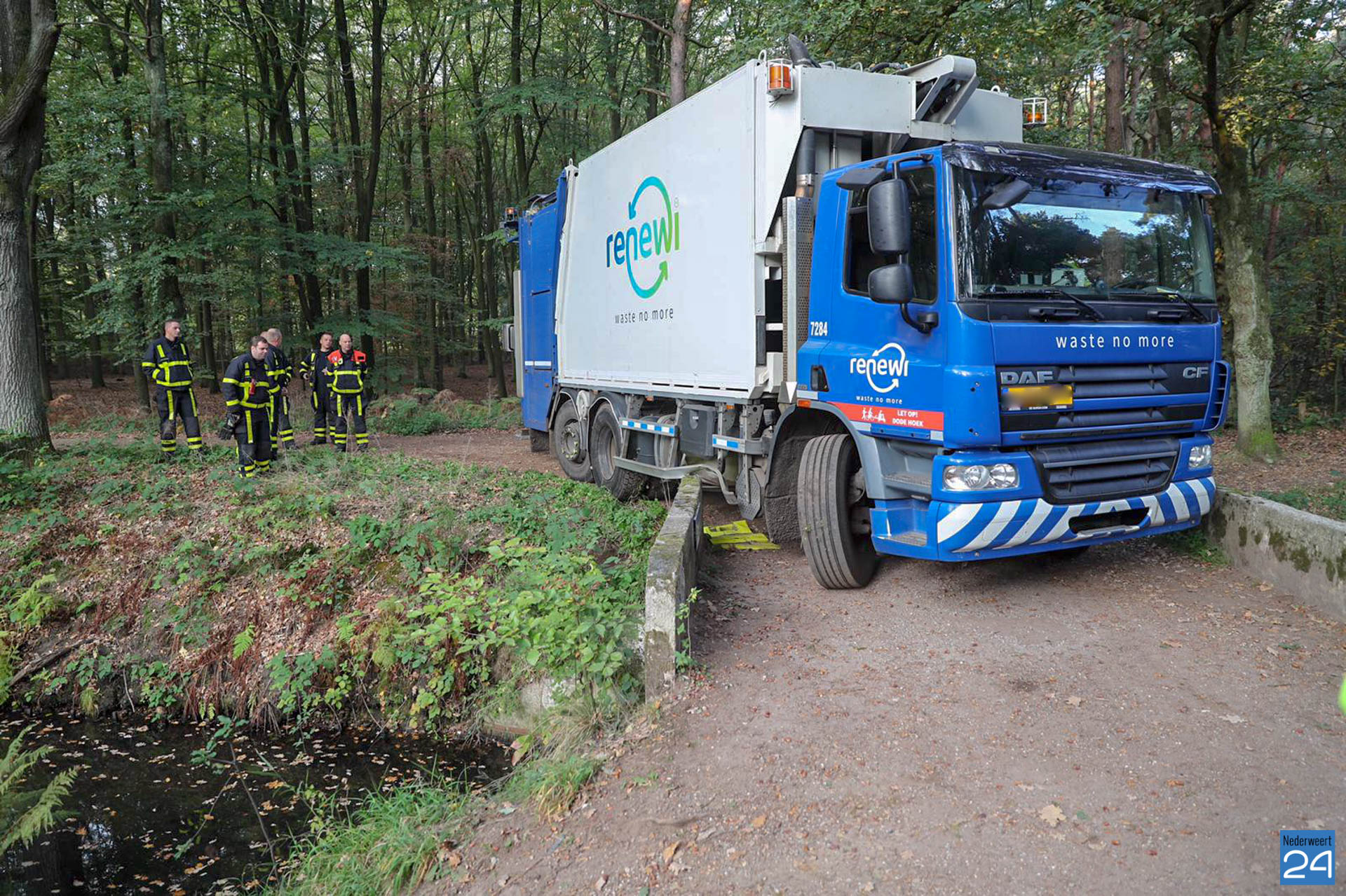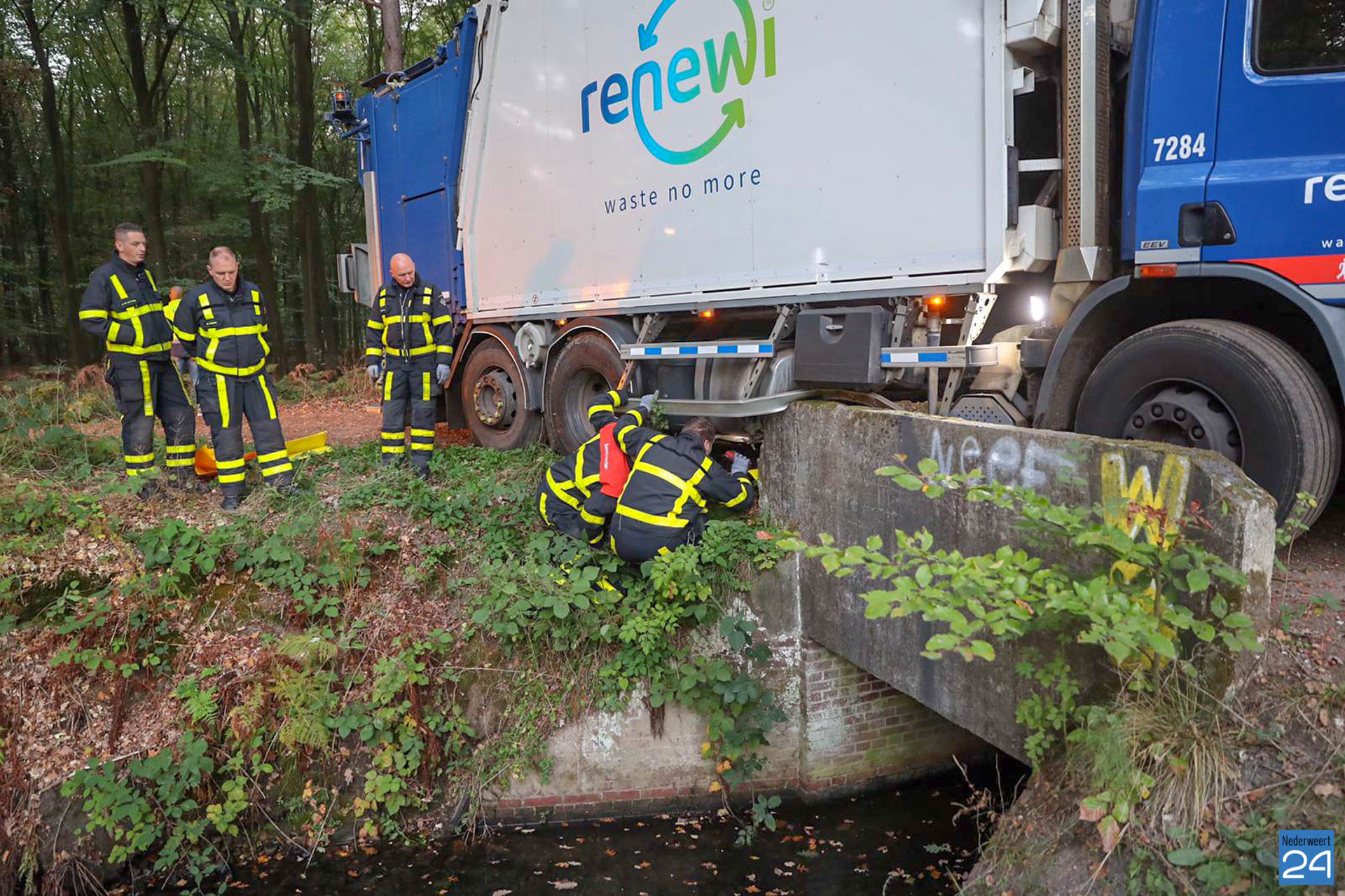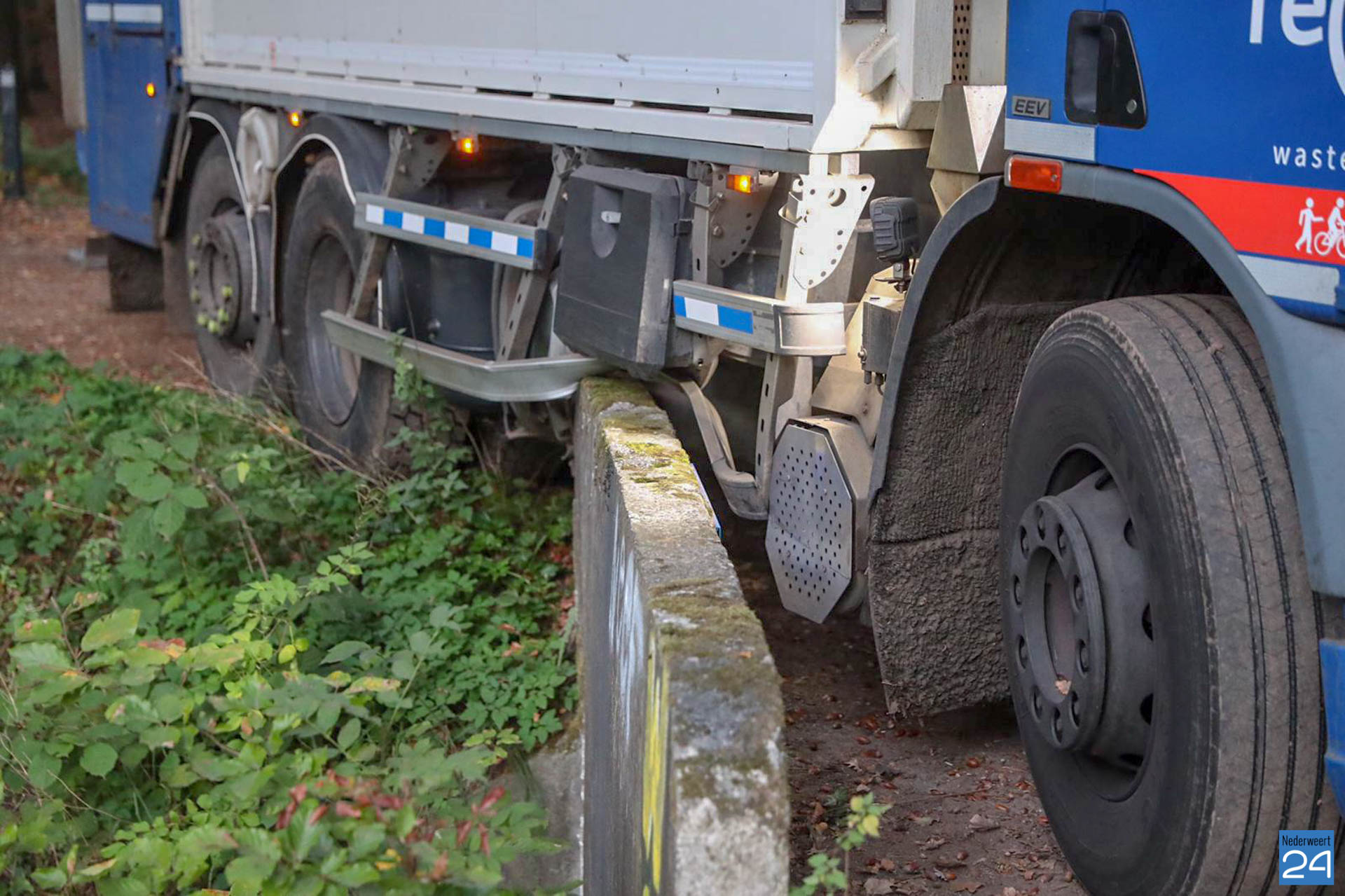 Donderdagmorgen heeft een vuilniswagen van Renewi zich vastgereden in het Weerterbos in Nederweert. De vrachtwagen had bij een bruggetje over de Oude Graaf de bocht te kort genomen. Hierdoor raakte de vrachtwagen een betonnen muurtje met een kapotte dieseltank als gevolg.