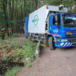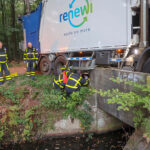 Donderdagmorgen heeft een vuilniswagen van Renewi zich vastgereden in het Weerterbos in Nederweert. De vrachtwagen had bij een bruggetje over de Oude Graaf de bocht te kort genomen. Hierdoor raakte de vrachtwagen een betonnen muurtje met een kapotte dieseltank als gevolg.