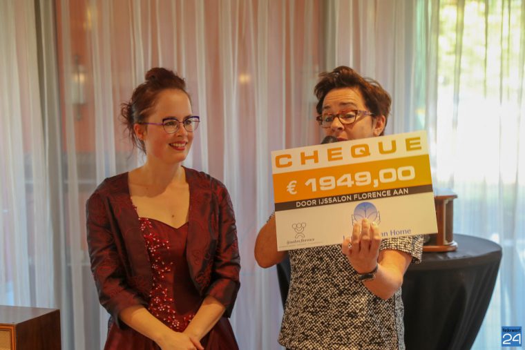 Marjo Janssen van IJssalon Florence heeft 1949 euro opgehaald voor de Zingende Diva, Ilse Jeurninck van zorgcentrum St. Joseph in Nederweert. De helft van de opbrengst van elke coupe ‘Chocolade Symfonie‘ was voor het goede doel.