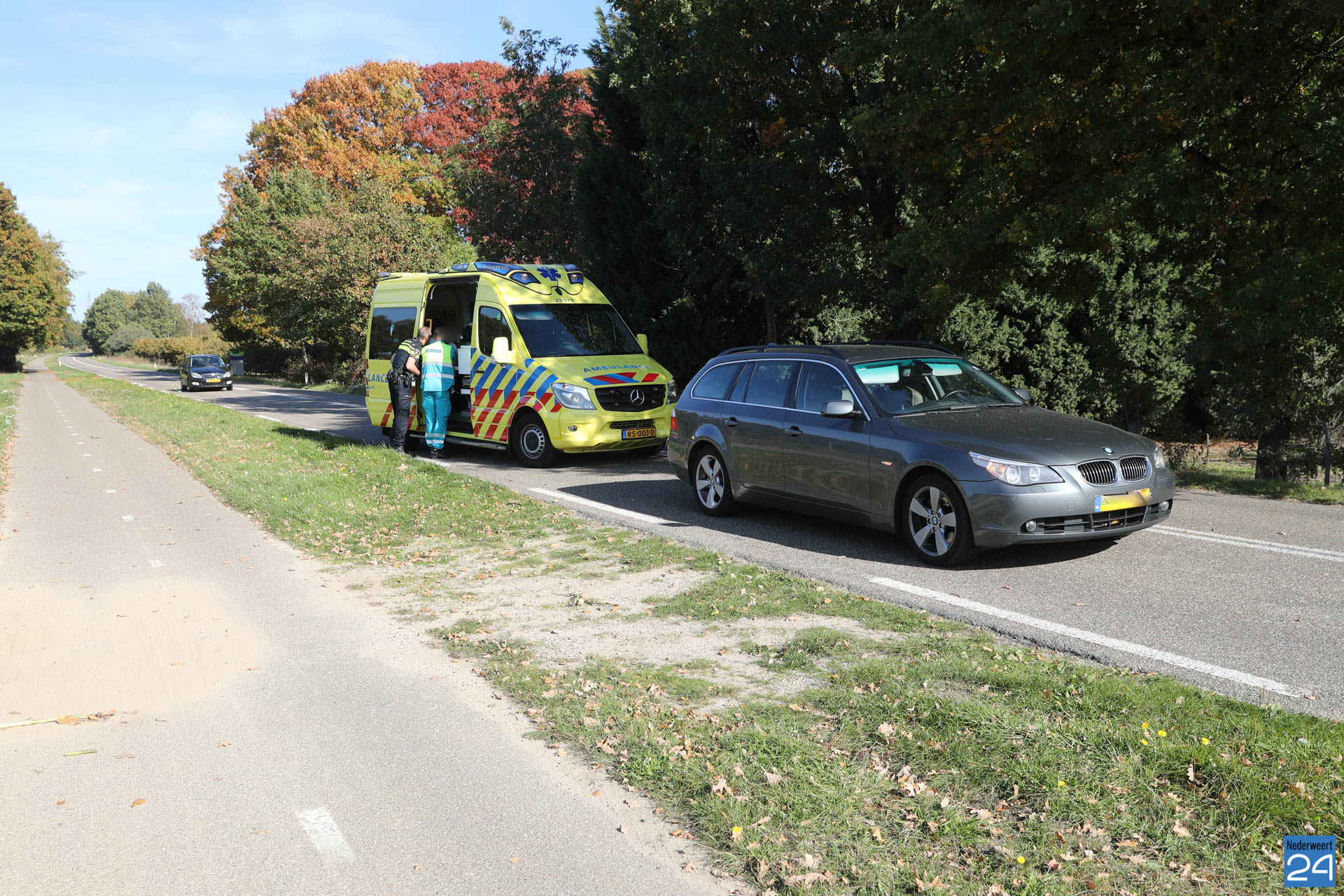 De motorrijder en de personenauto reden vanuit Baexem richting Grathem. Halverwege reed de motorrijder door onbekende oorzaak achter op de auto en viel. Hierbij raakte hij gewond. De inzittende van de personenauto kwamen met de schrik vrij.
