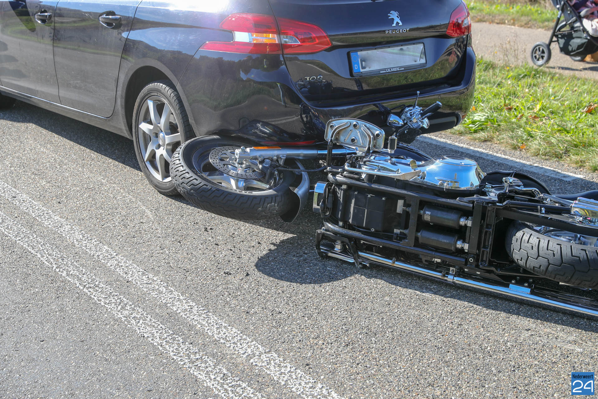 Zaterdagmiddag is een motorrijder gewond geraakt nadat hij achterop een personenauto reed op de Baexemerweg in Grathem.