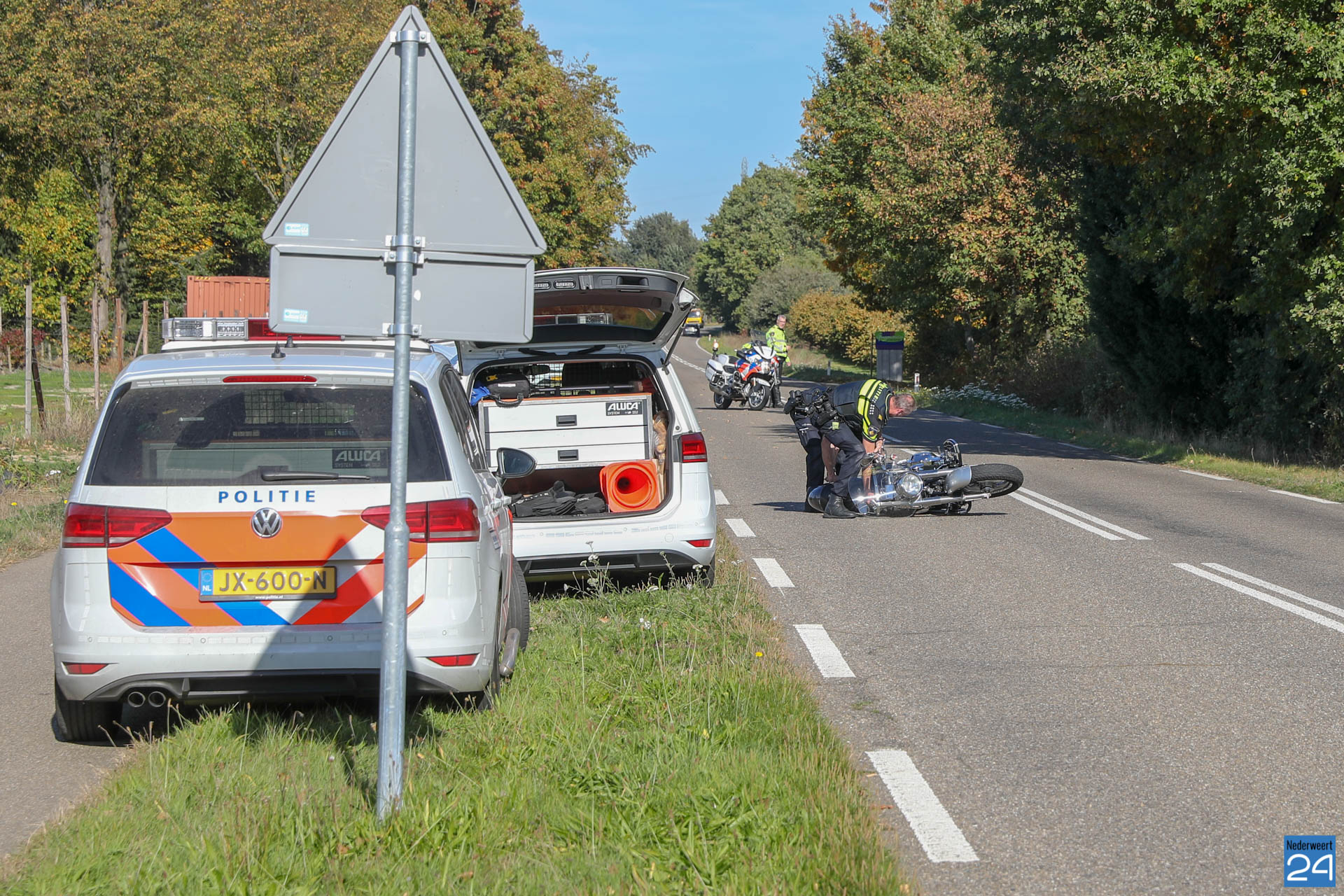 De motor had flink wat schade en is opgehaald door de berger. De personenauto had weinig schade en kon zijn weg vervolgen.