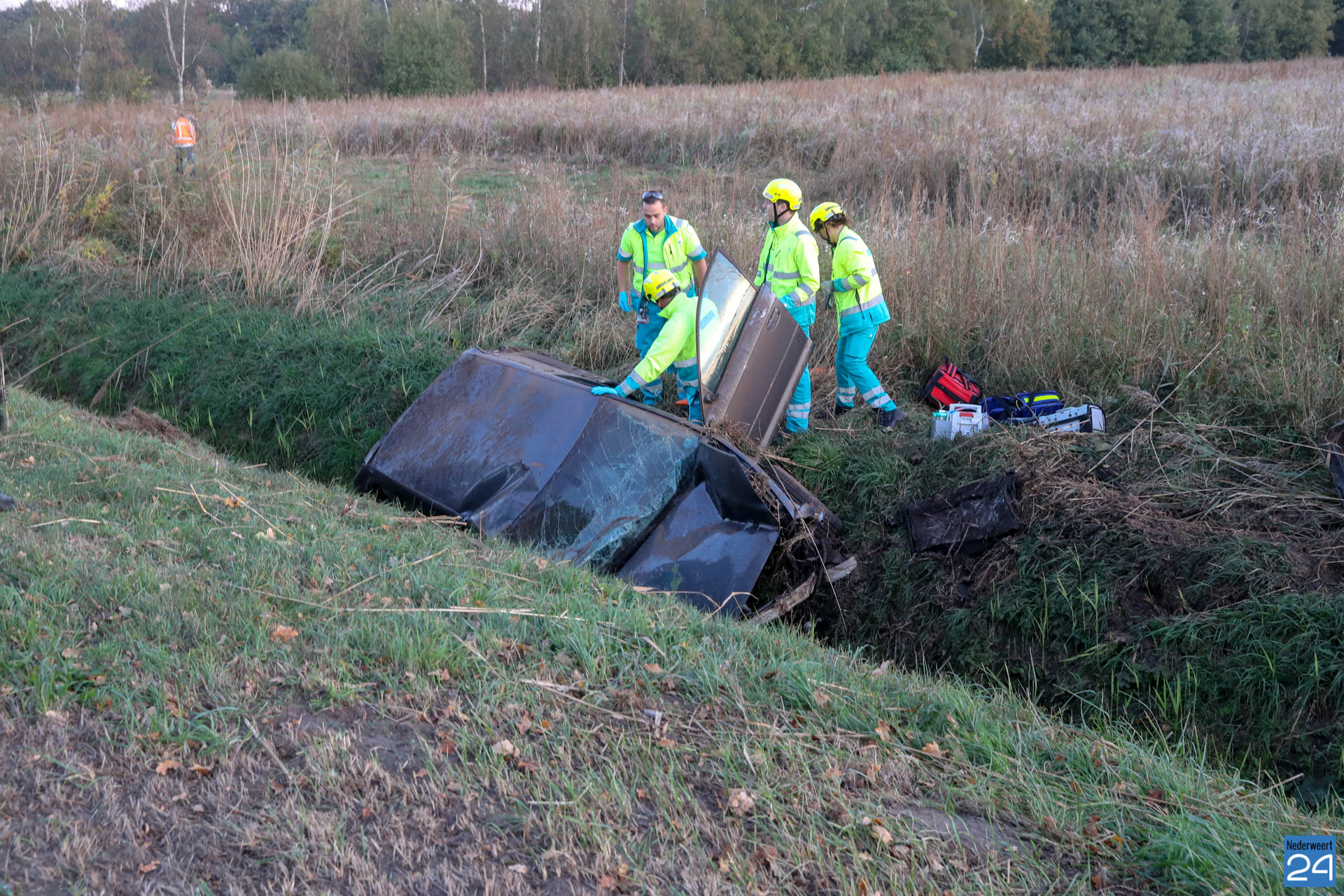 De auto reed vanuit Leveroy richting Nederweert-Eind. Een stuk voorbij dagcamping de Houtsberg is de auto rechts naast de weg geraakt, heeft een duiker geraakt, over de kop gevlogen en is een stuk verder in de sloot tot stilstand gekomen.