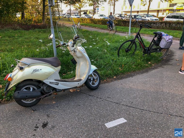 Op het fietspad bij de kruising Roermondseweg met de Ringbaan-Oost in Weert zijn woensdagmiddag een fietsster en een scooterrijdster met elkaar in botsing gekomen.