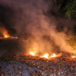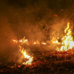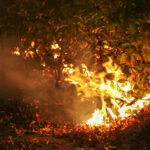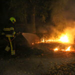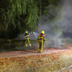 Brandweer blust brandende heg