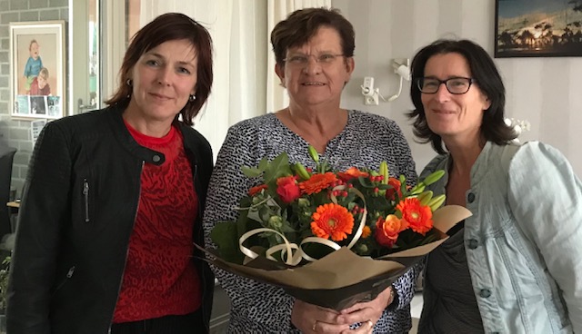 WMO-consulent Chris Hodenius en mantelzorgconsulent Sandra Hermans gingen naar Ospel om Truus te bedanken voor haar inzet als mantelzorger.