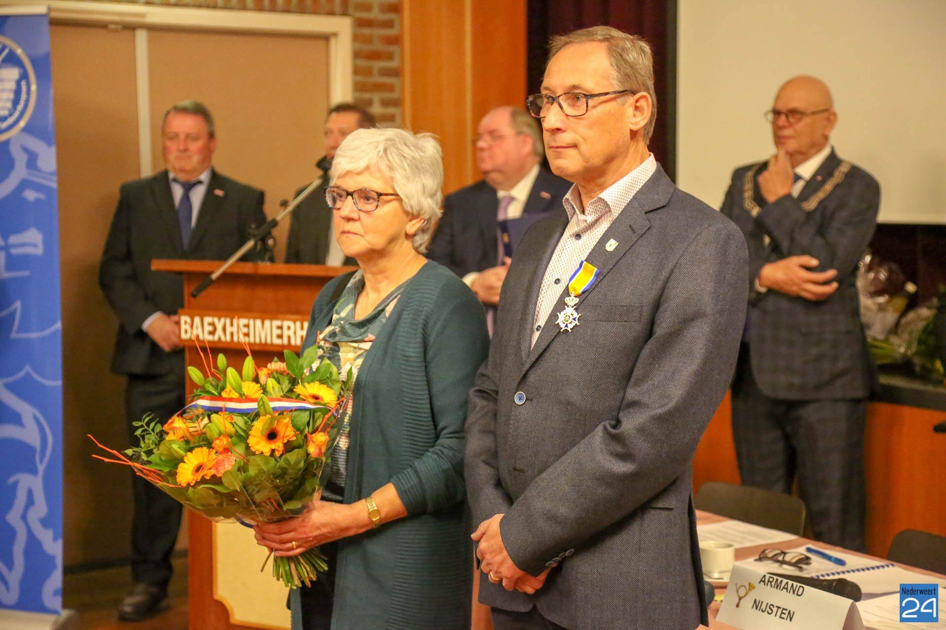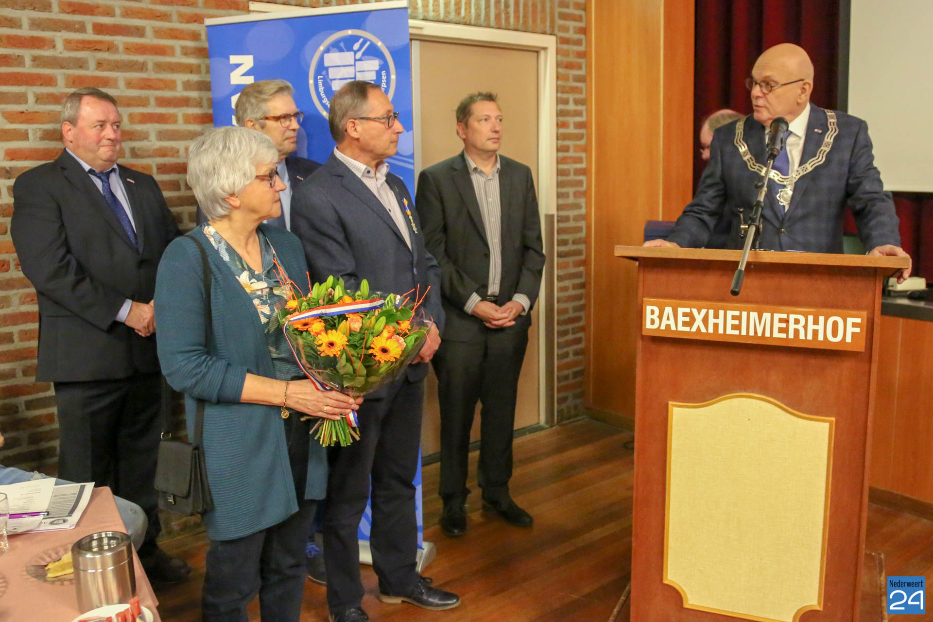 Op zaterdagochtend reikte burgemeester Evers van Nederweert de versierselen uit behorende bij de benoeming tot Ridder in de Orde van Oranje-Nassau aan de heer Henk Klaessens (63 jaar) uit Leveroy. De uitreiking vond plaats tijdens de algemene vergadering van de Limburgse Bond van Tamboerkorpsen (LBT) in de Baexheimerhof in Baexem. De heer Klaessens is al ruim 36 jaar belangeloos actief voor de gemeenschap en met name in de muziek.