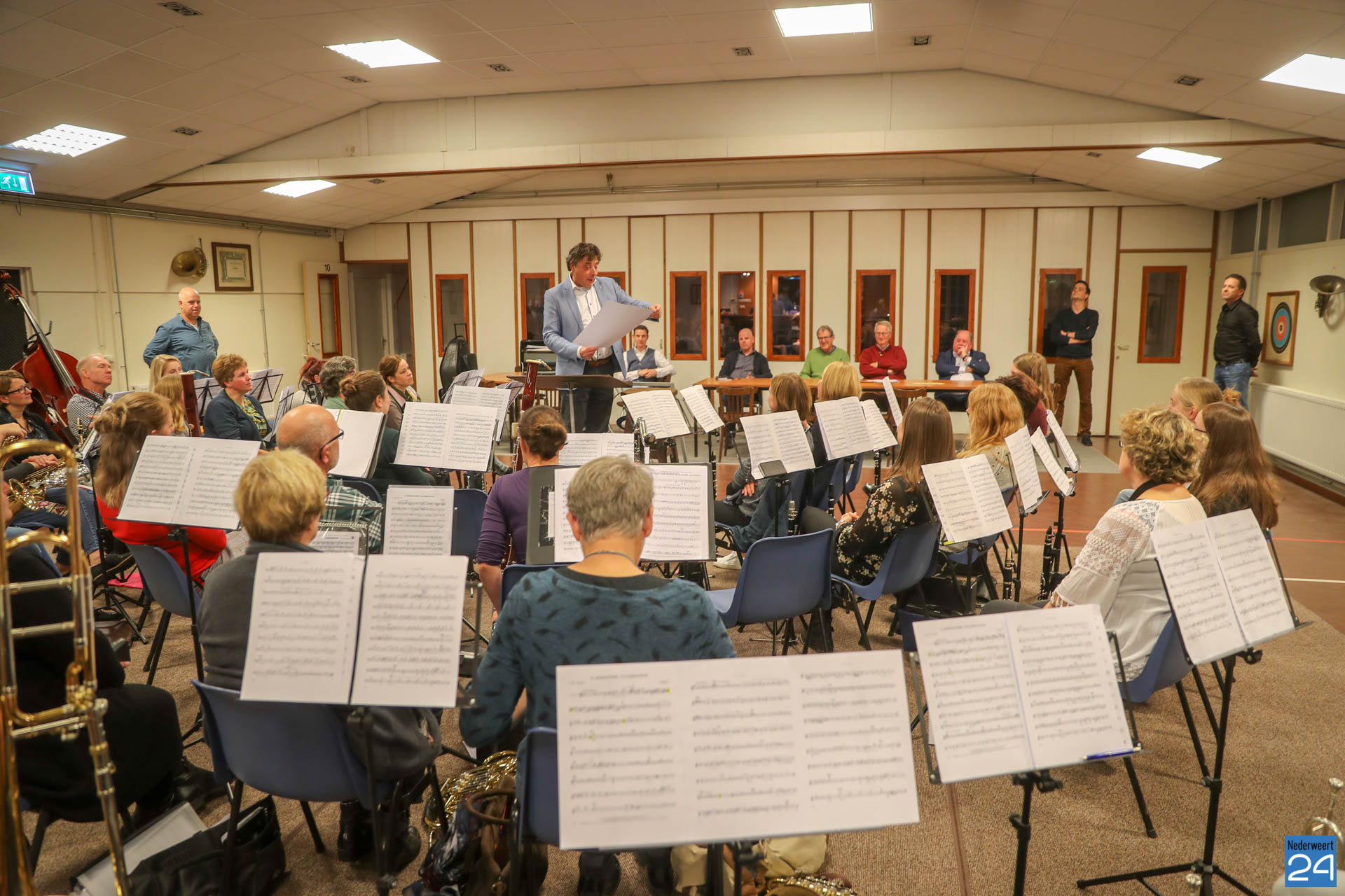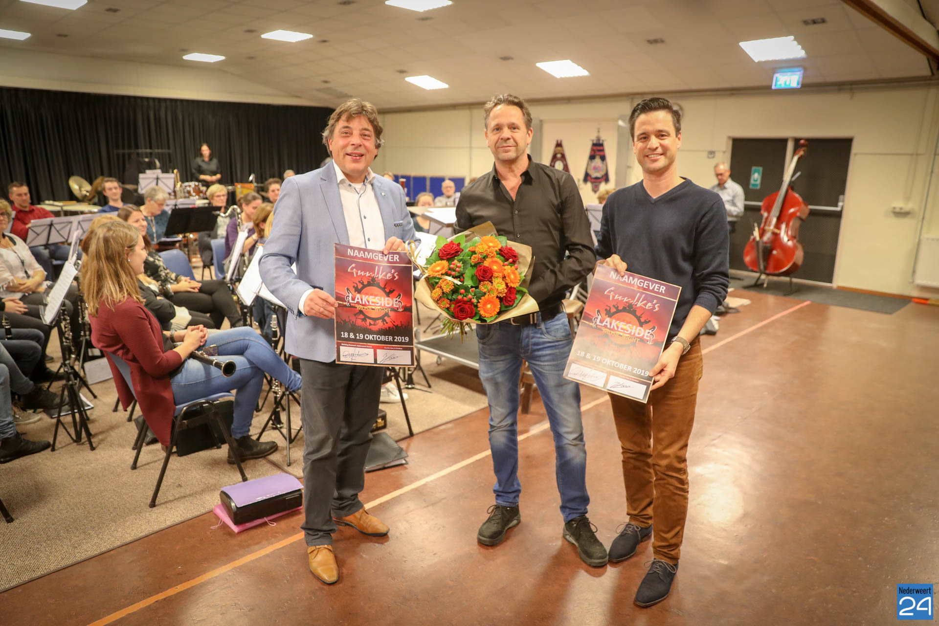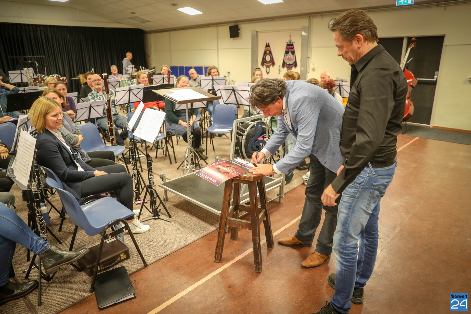 In het Willem Tell gebouw waar de harmonie haar wekelijkse repetitie houdt, werd in de pauze het heugelijke feit bekend gemaakt door voorzitter Guus van Cruchten van de stichting Harmonie Nederweert Events. Om het een echt officieel tintje te geven werd dit schitterende gebaar van Joost en Nicole Linsen, door het ondertekenen van een pamflet, kracht bijgezet!