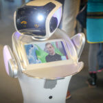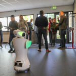 Een speciale robot stond aan de ingang van de school om iedereen welkom te heten.