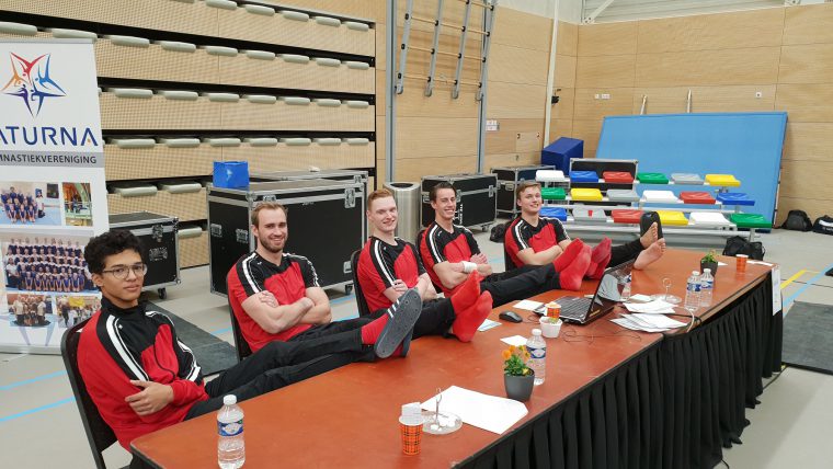 De mannen zaten helemaal in de wedstrijd en wisten dat ze dicht hij hun doel zaten. Op brug werd goed geconcentreerd geturnd wat resulteerde in een monsterscore voor Rik. Op rekstok werd de wedstrijd stabiel afgesloten met een hoogtepunt voor Kaj, hij turnde voor de eerste keer de reuzenslinger in een wedstrijd.