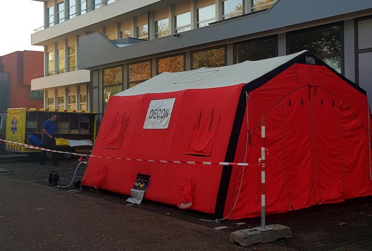 Een tent bij de Spoedeisende hulp… mensen die met speciale pakken in- en uitlopen… Je zou bijna denken dat er iets aan de hand is bij SJG Weert. En dat is er ook: vandaag oefenen medewerkers van de Spoedeisende Hulp situaties waarbij een patiënt in aanraking is gekomen met gevaarlijke stoffen.
