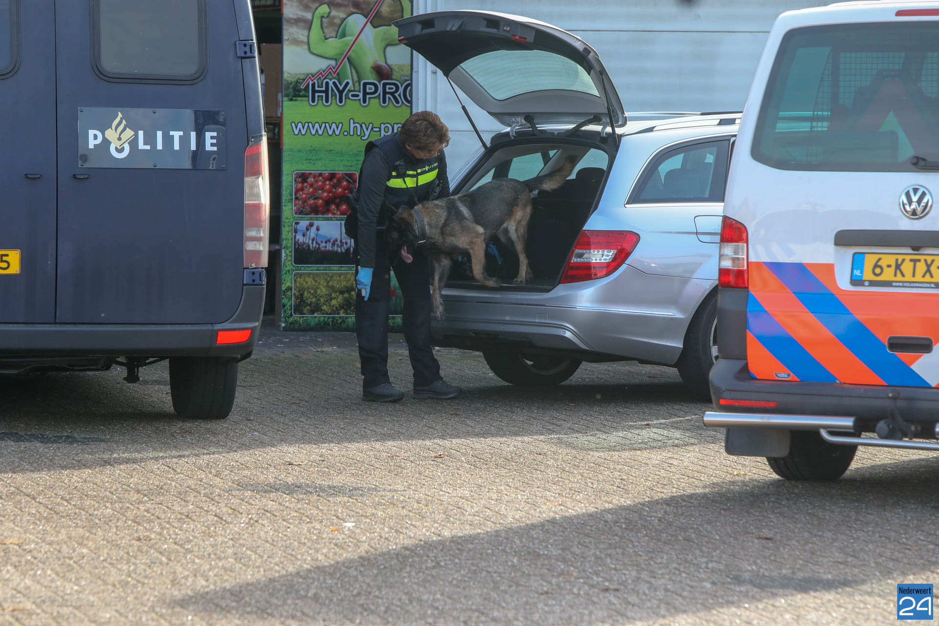 In het pand zijn meerdere bedrijven gevestigd. Eén bedrijf handelt in tuinbenodigdheden. De politie doorzoekt het pand grondig. Een auto’s die op het terrein staan worden doorzocht met honden.