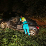 De bestuurster kon zelf uit de auto komen waarna ze zelf de hulpdiensten heeft gebeld. Het ambulancepersoneel heeft de vrouw onderzocht maar ze kwam met de schrik vrij.