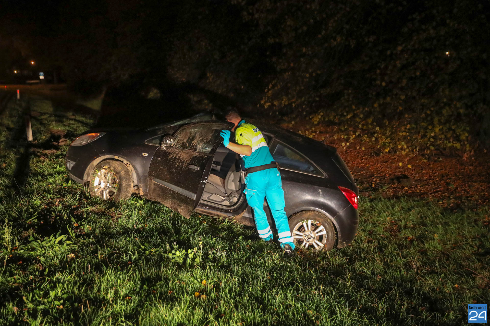 De bestuurster kon zelf uit de auto komen waarna ze zelf de hulpdiensten heeft gebeld. Het ambulancepersoneel heeft de vrouw onderzocht maar ze kwam met de schrik vrij.