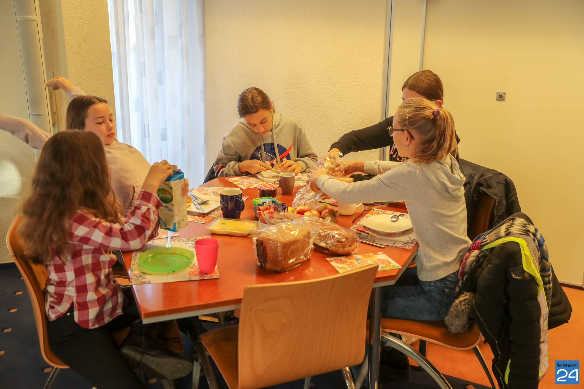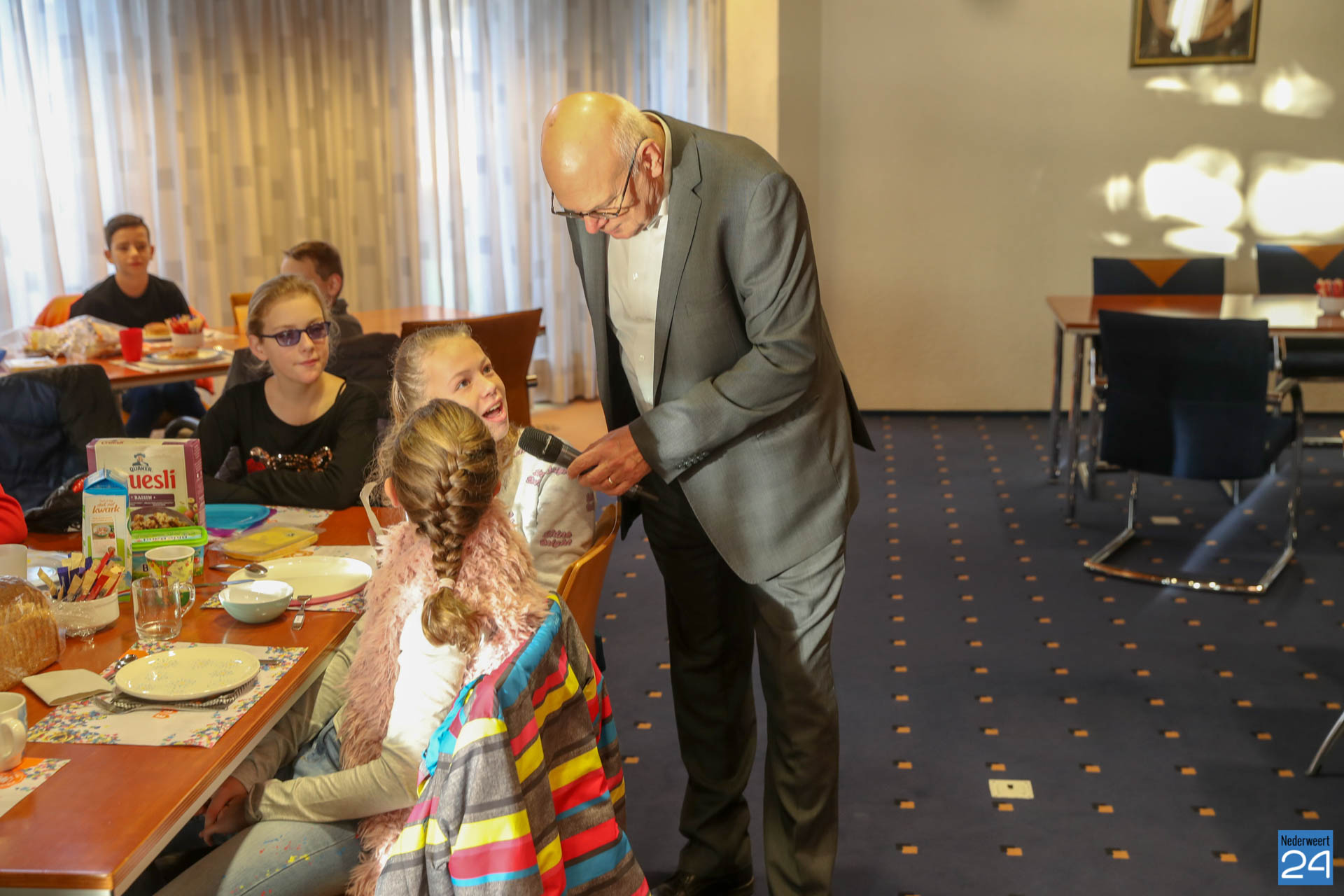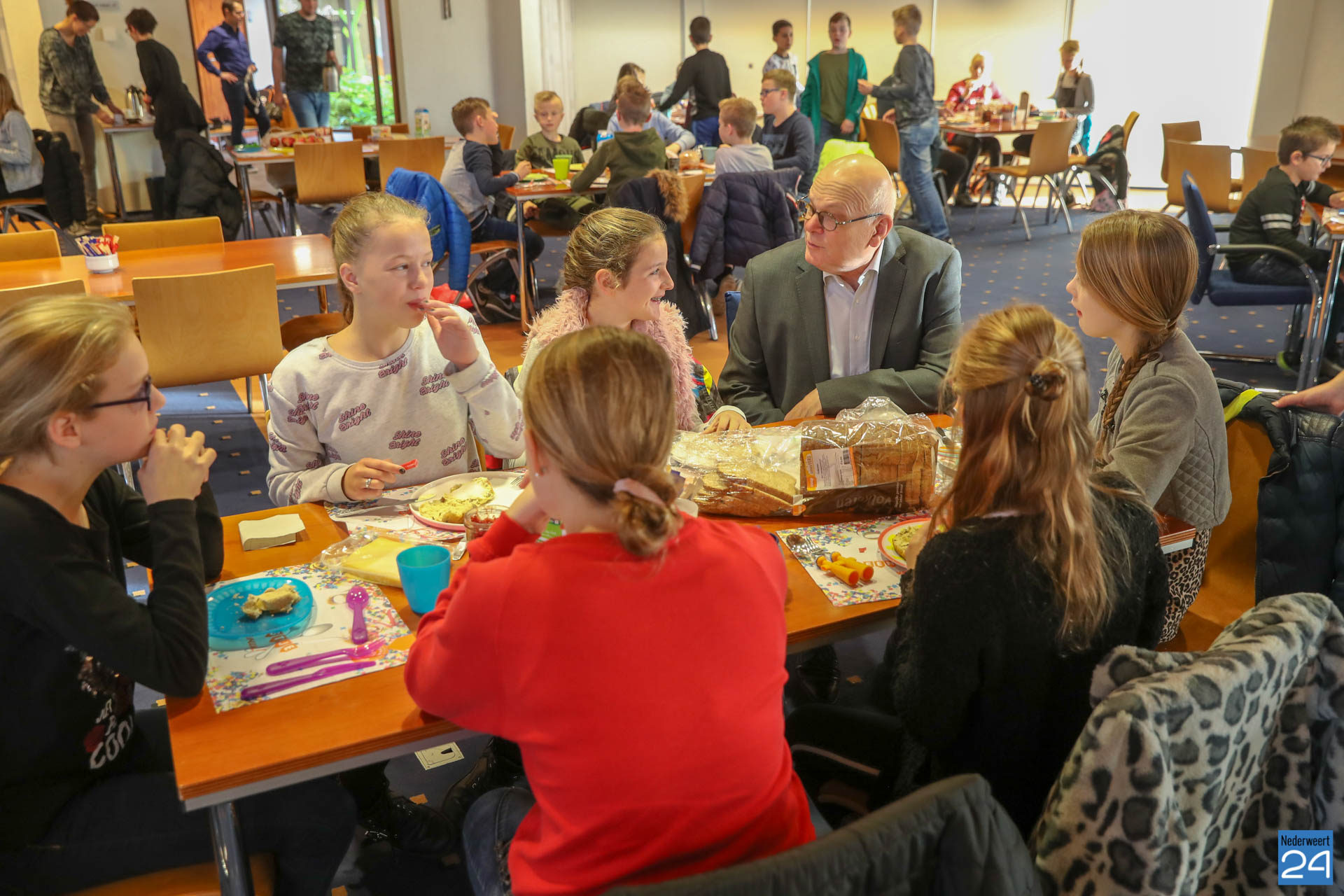 Vanochtend brachten kinderen van groepen 7 en 8 van Basisschool Budschop uit Budschop en IKC De Kerneel uit Nederweert een ontbijtje bij burgemeester Evers, wethouder Koolen en wethouder Cuijpers in het gemeentehuis. In de Raadzaal gaven ze met dat gezamenlijk Burgemeestersontbijt het goede voorbeeld in de week van het Nationaal Schoolontbijt, waarbij een half miljoen kinderen samen gezond ontbijten op zo’n 2.500 basisscholen.