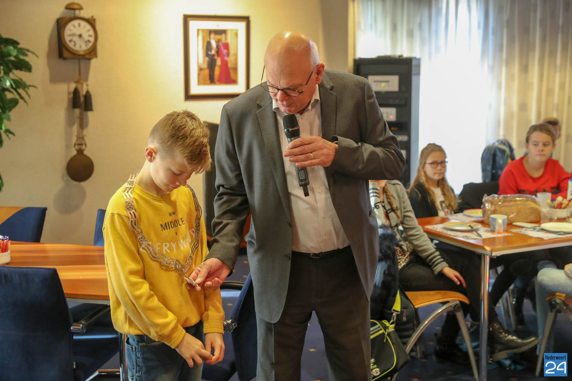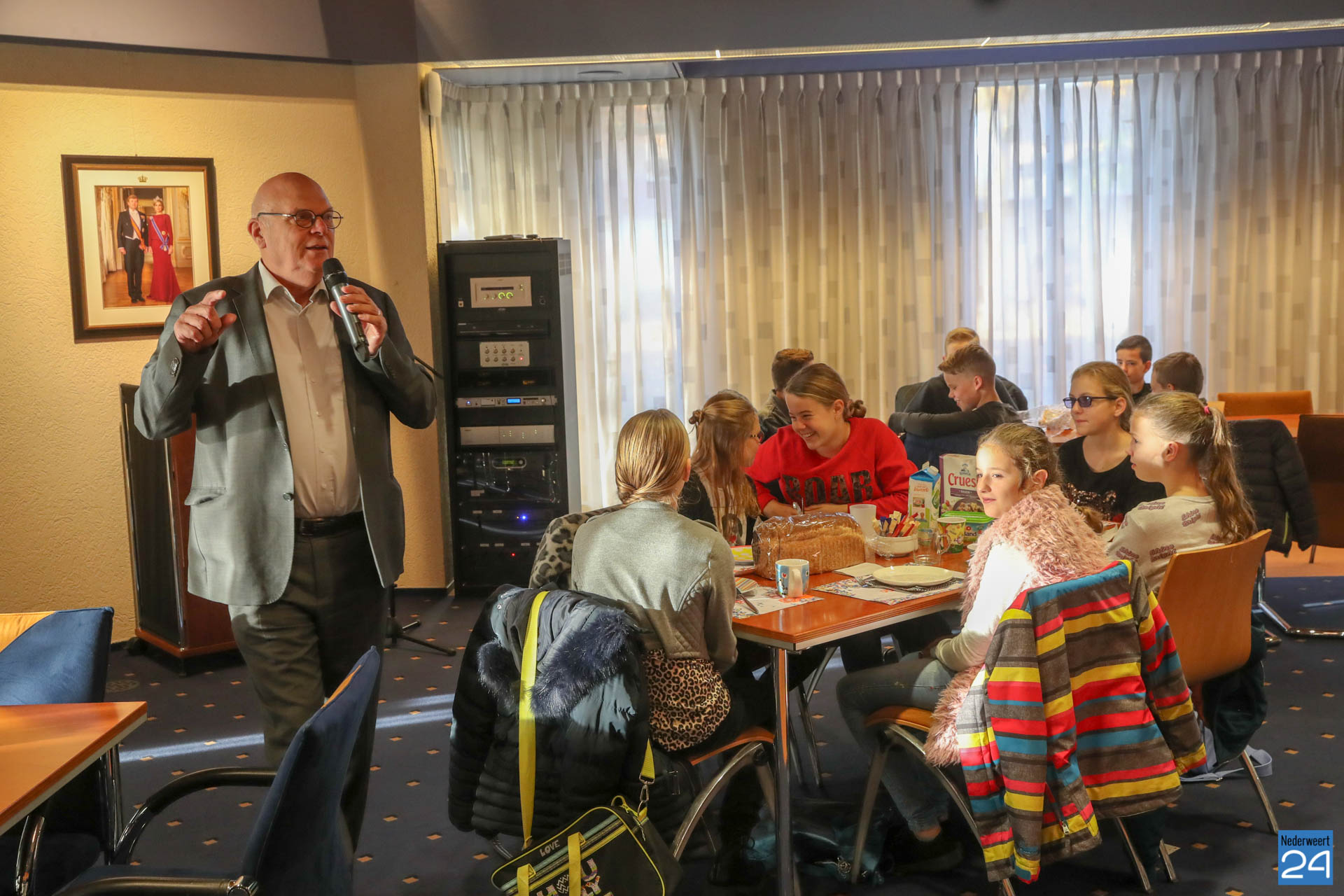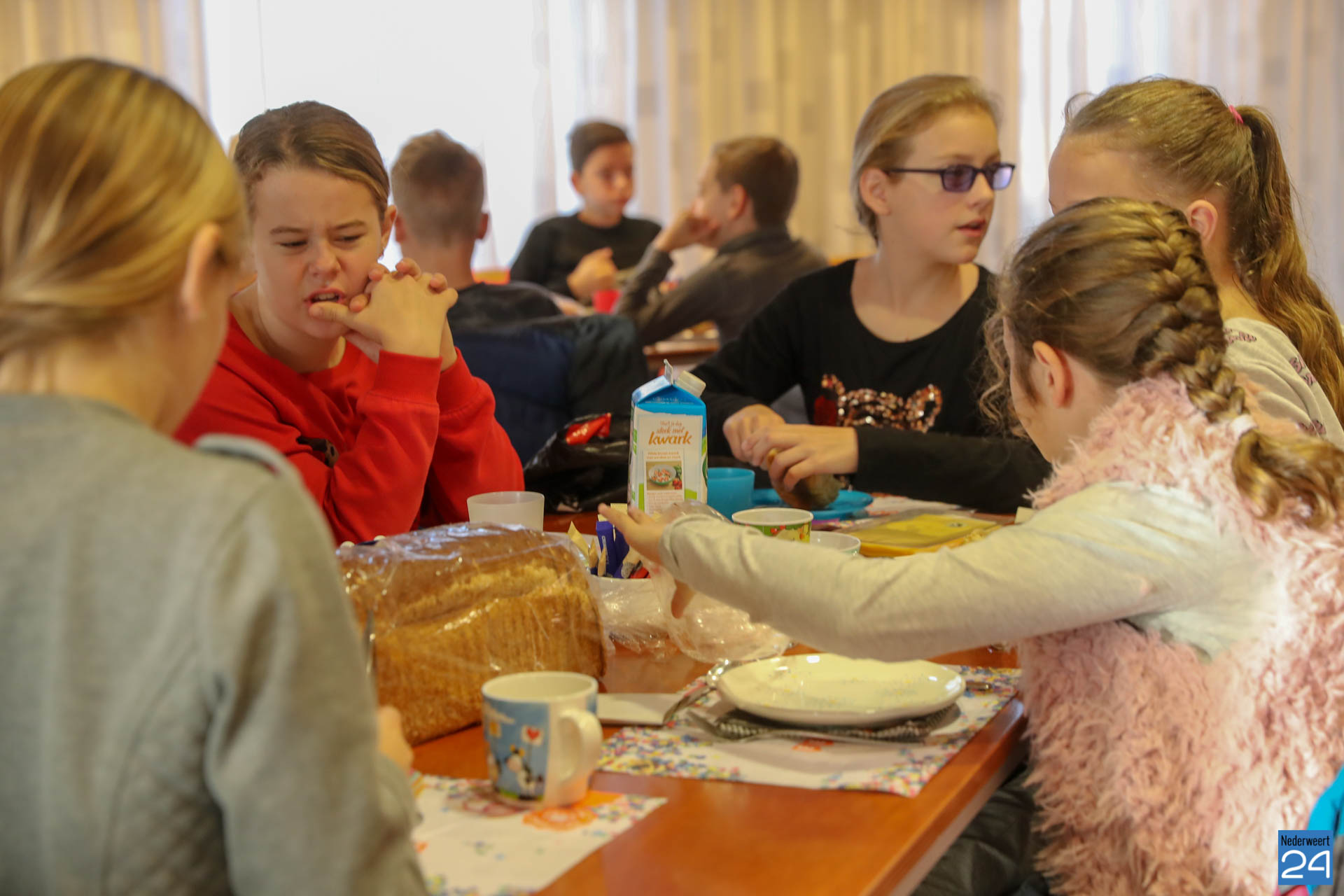 Vanochtend brachten kinderen van groepen 7 en 8 van Basisschool Budschop uit Budschop en IKC De Kerneel uit Nederweert een ontbijtje bij burgemeester Evers, wethouder Koolen en wethouder Cuijpers in het gemeentehuis. In de Raadzaal gaven ze met dat gezamenlijk Burgemeestersontbijt het goede voorbeeld in de week van het Nationaal Schoolontbijt, waarbij een half miljoen kinderen samen gezond ontbijten op zo’n 2.500 basisscholen.