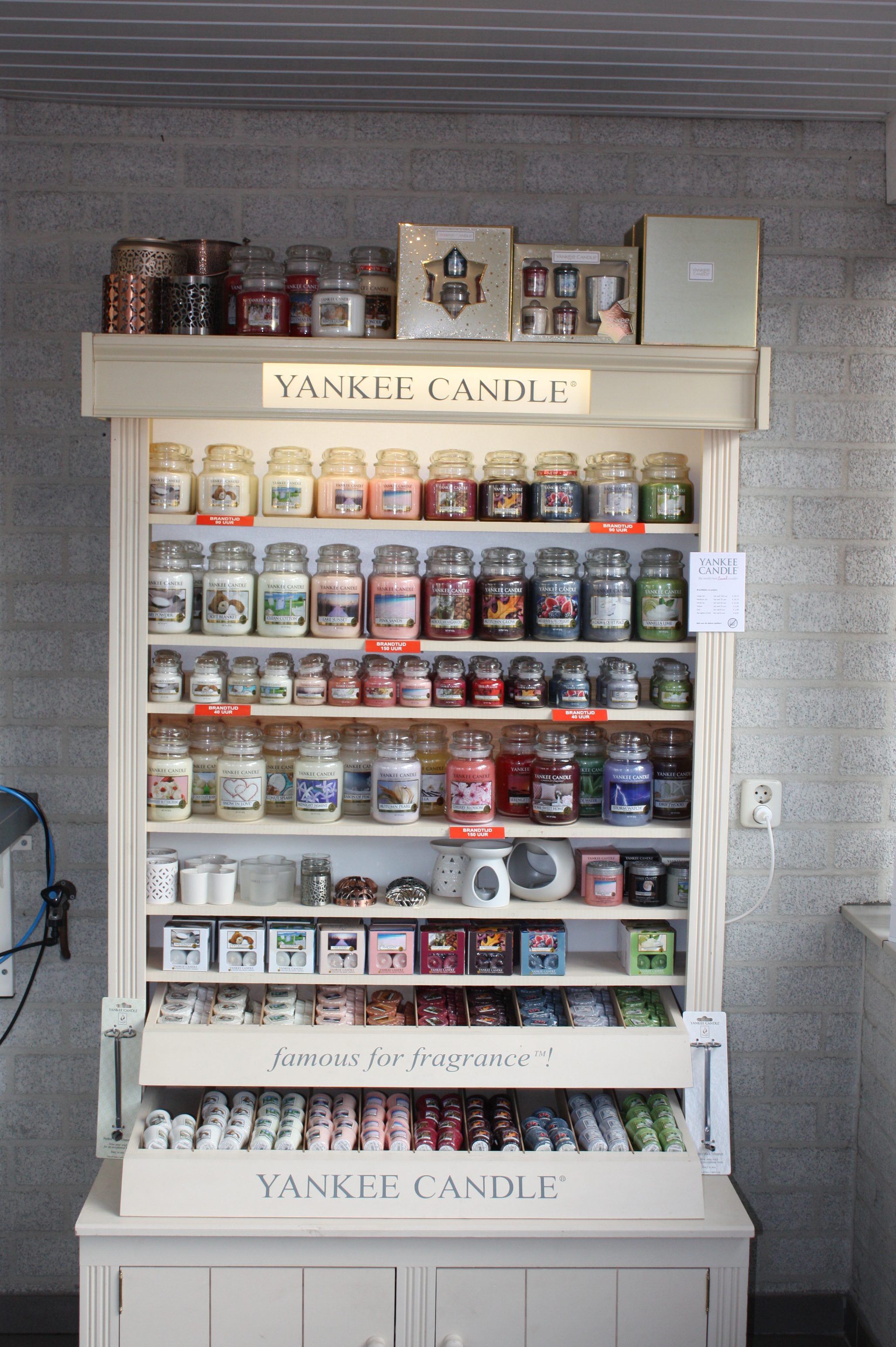 Nu de donkere dagen en feestdagen er aankomen is er steeds meer vraag na kaarsen. Daarom hebben ze besloten om de wensen van de klant tegemoet te komen en hebben ze het assortiment flink uitgebreid. Er is een echte Yanckee Candle kast geplaatst met meerdere geuren. De large jars kunnentot wel 150 uur branden. “Verder hebben wij natuurlijk ook leuke accessoires zoals lantaarns – waxmelt branders – votive houders- theelicht houders- elektrische melt apparaten enz” aldus Angela.