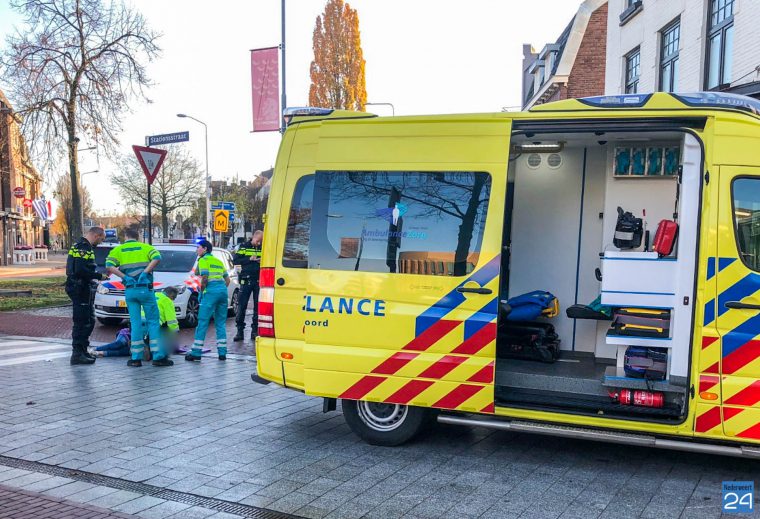 De vrouw kwam ten val en raakte daarbij gewond. Ze is ter plekke door het ambulancepersoneel nagekeken en vervolgens overgebracht naar het ziekenhuis. De politie heeft een onderzoek ingesteld. Getuigen mogen zich melden via 0900-8844. Het zou gaan om een kleine licht-blauwe personenauto.
