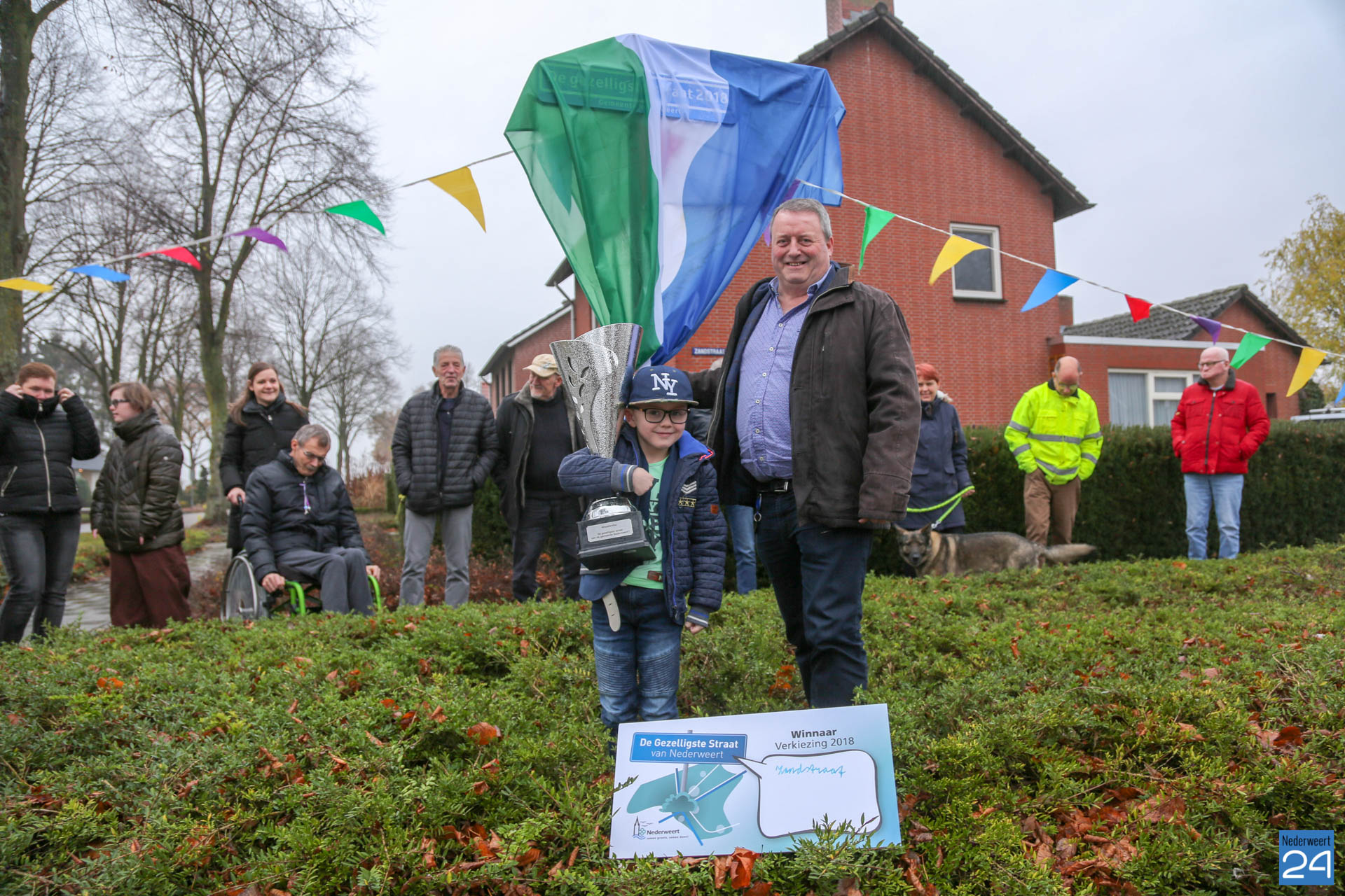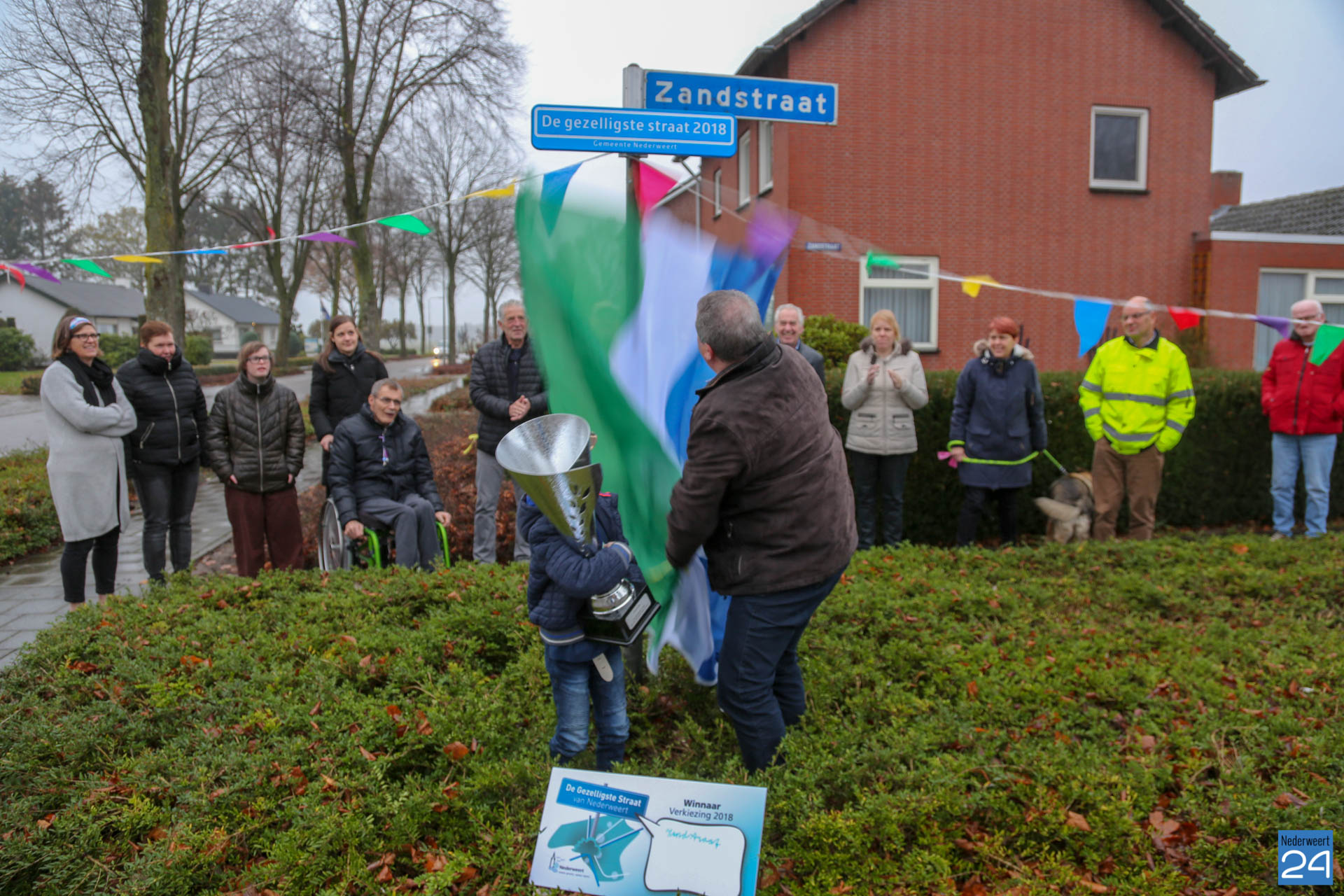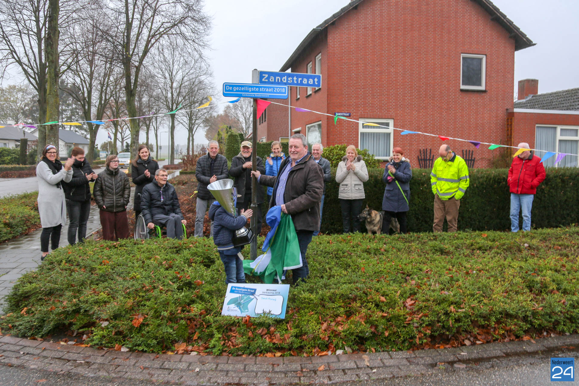 De Zandstraat won een grote wisselbokaal, een vrolijk straatnaambordje én een tegoedbon voor een winterpakket met onder andere een kerstboom, lampjes, glühwein, oliebollenmix en andere versnaperingen. Daarmee kan de buurt in de decemberperiode nog een keer gezellig worden gemaakt. Wethouder Henk Cuijpers onthulde vandaag onder toeziend oog van bewoners de straatnaamborden.
