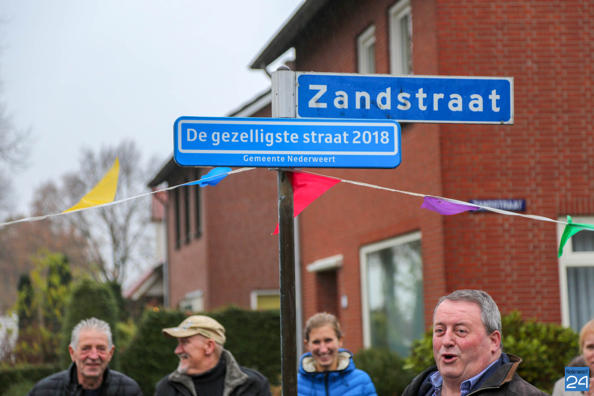 Onlangs werd de Zandstraat in Ospeldijk verkozen tot ‘De gezelligste straat van Nederweert’. Naast de wisselbokaal en de tegoedbon voor een winterpakket die al eerder in ontvangst werden genomen, is de Zandstraat vanaf vandaag ook te herkennen aan de straatnaamborden ‘De gezelligste straat van Nederweert’. Dit nieuwe initiatief werd georganiseerd door de gemeente Nederweert. Leefbaarheidsregisseur Harold van der Haar, “We vinden het belangrijk dat buren en straatgenoten met elkaar in contact komen en de saamhorigheid en het ‘wij-gevoel’ in de straat versterken.”