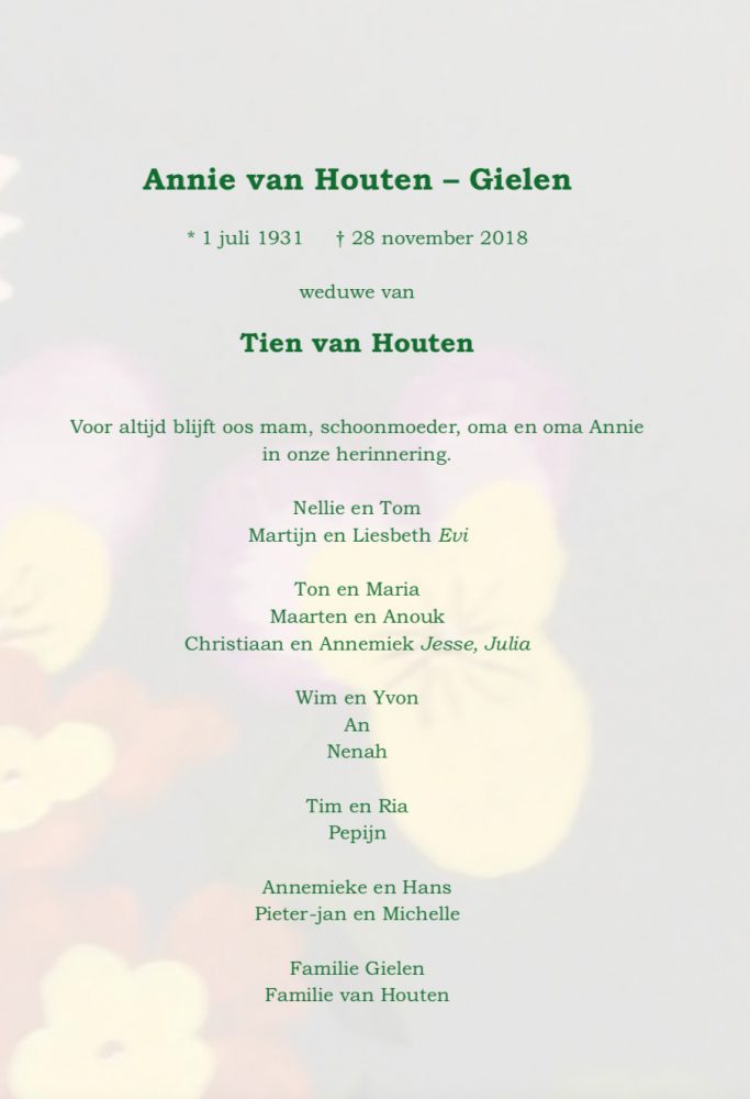 Gecondoleerd met het verlies van (schoon)moeder en oma.