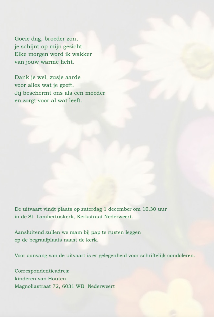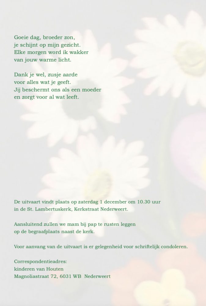Gecondoleerd met het overlijden van jullie mam, sterkte de komende tijd.