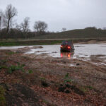 Zaterdagmiddag is een man met zijn jeep het water ingereden. Dat gebeurde op een terrein aan de Heihuisweg, achter de centrale zandwinning in Weert. De man kon op eigen kracht uit zijn voertuig komen.