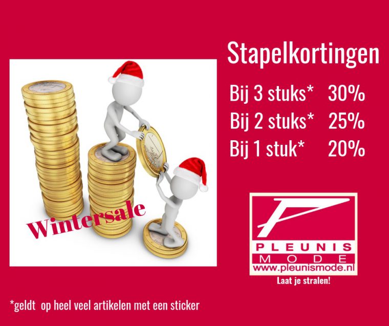 Bij Pleunis Mode is de opruiming gestart. Je kunt zelf je korting bepalen, want bij aankoop van minimaal 3 stuks krijg je op alles 30% korting. Er is nog voldoende keuze in de maten 36 t/m 48. Kom gerust een keertje kijken, het team van Pleunis Mode adviseert je op een eerlijke en prettige manier met oog voor detail. En als de kleding niet 100% perfect zit, vermaken zij het op hun eigen atelier.