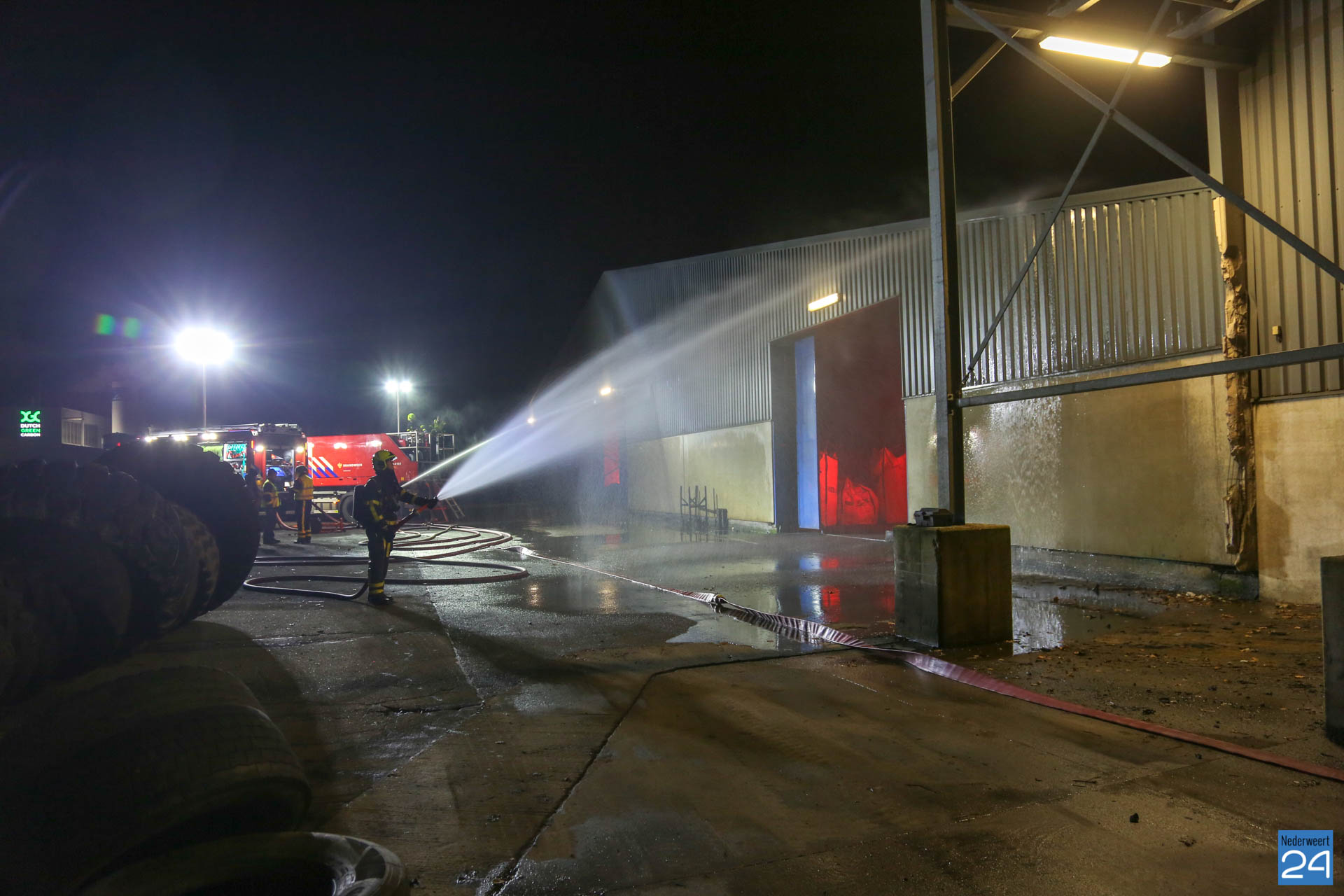 De brandweer kreeg een brandmelding binnen bij het bedrijf. Al snel werd duidelijk dat het om een enorme brand ging en moesten alle korpsen vlug aan de bak. Ook een zogenoemd groot watertransport werd ingezet om de spuitgasten te voorzien van water uit het naastgelegen kanaal. De brand breide zich snel uit, en ook een gastank ontplofte. Toch wist men het vuur onder controle te krijgen.