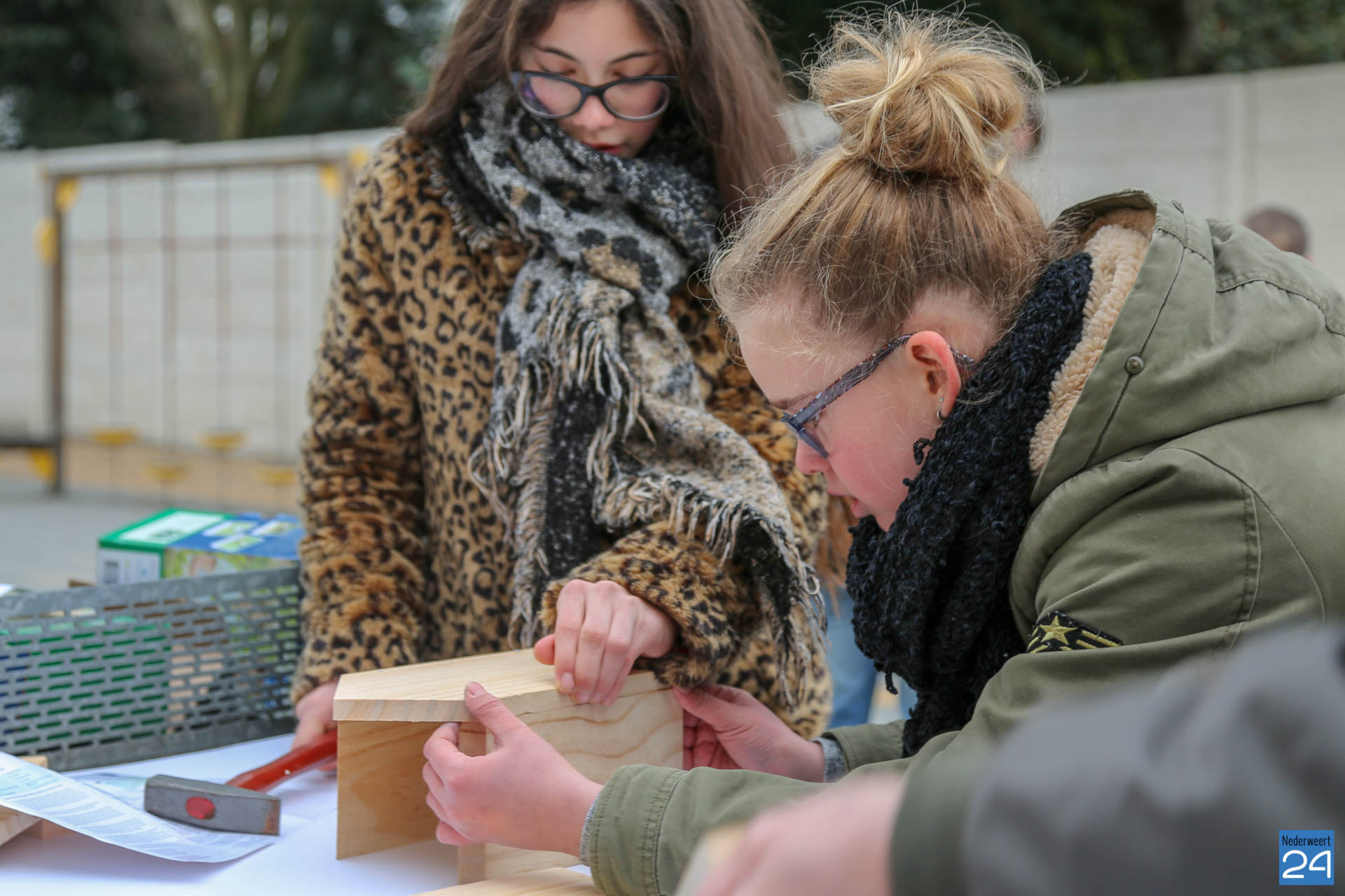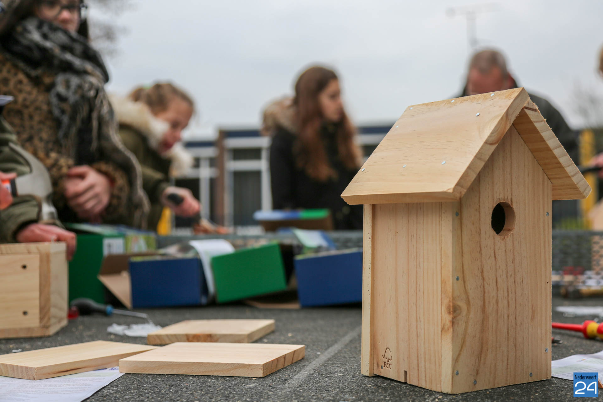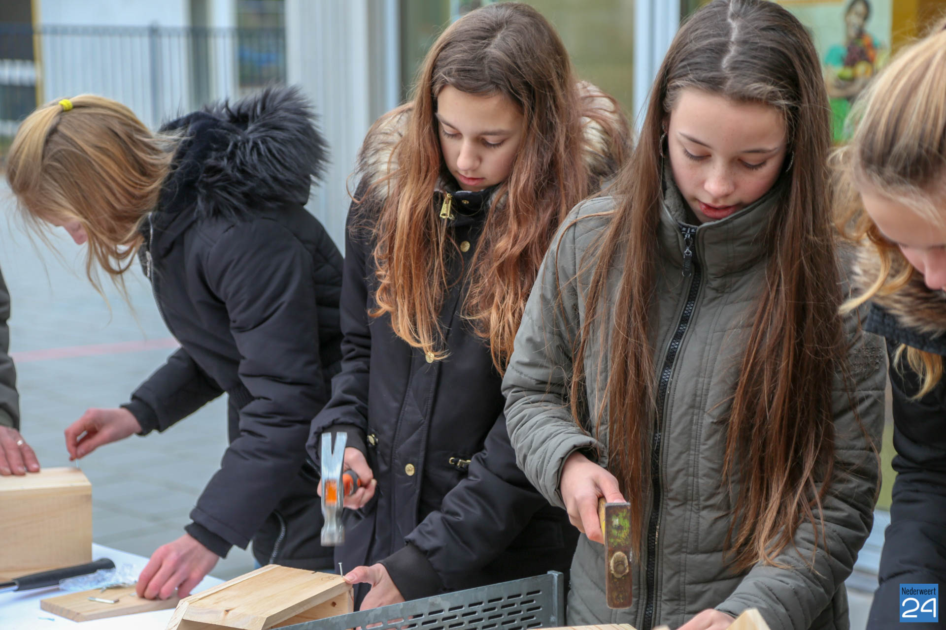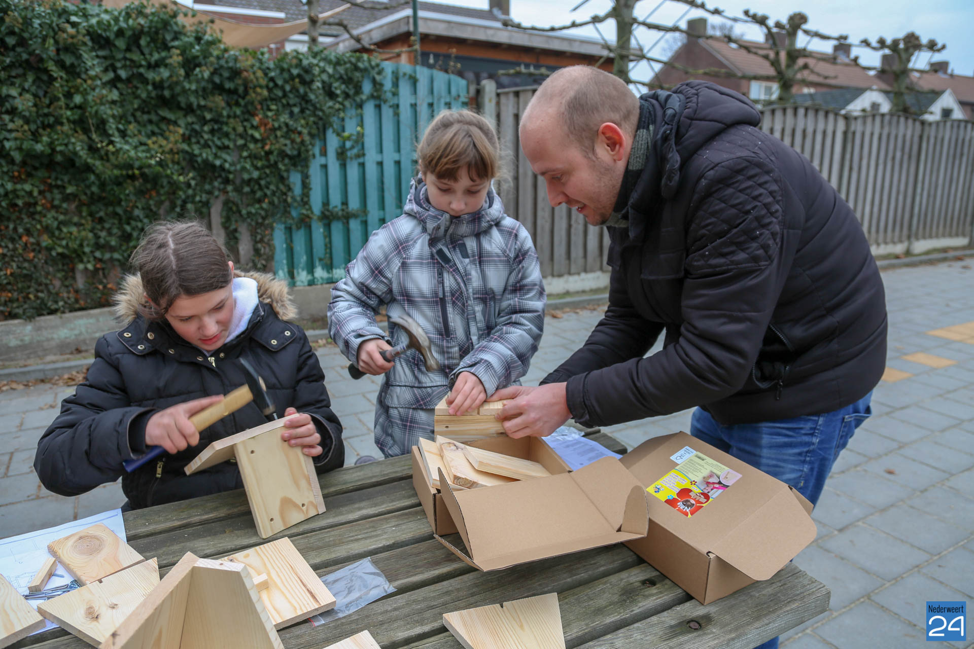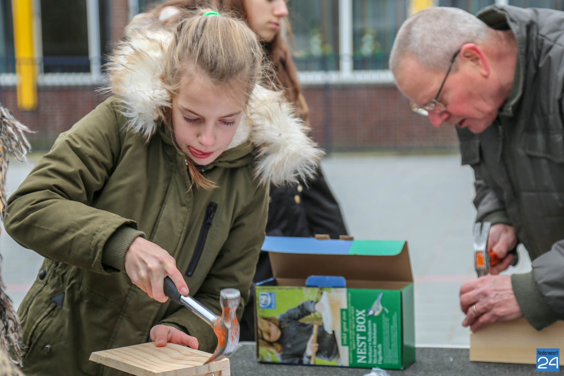De nestkastjes die vrijdagmidag zijn gemaakt, krijgen een tijdelijk plekje in het nieuwe Kanaalpark ‘De Heerlijckheid’. ”Een mooi voorbeeld van samenwerken in de wijk,” zegt lerares Peggy Sangen. De leerlingen zijn vol enthousiastme, samen met ouders en opa’s, aan de slag gegaan.