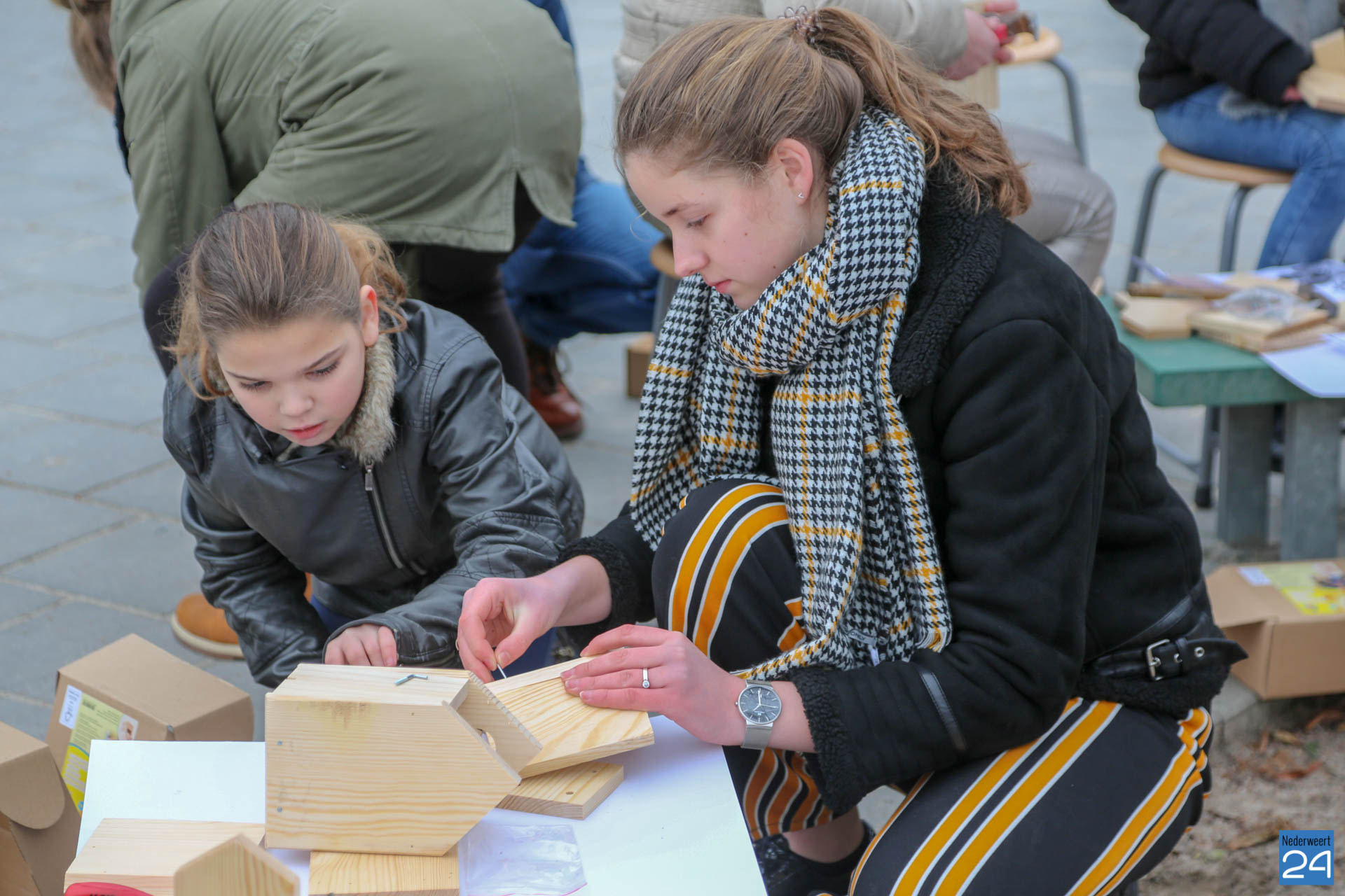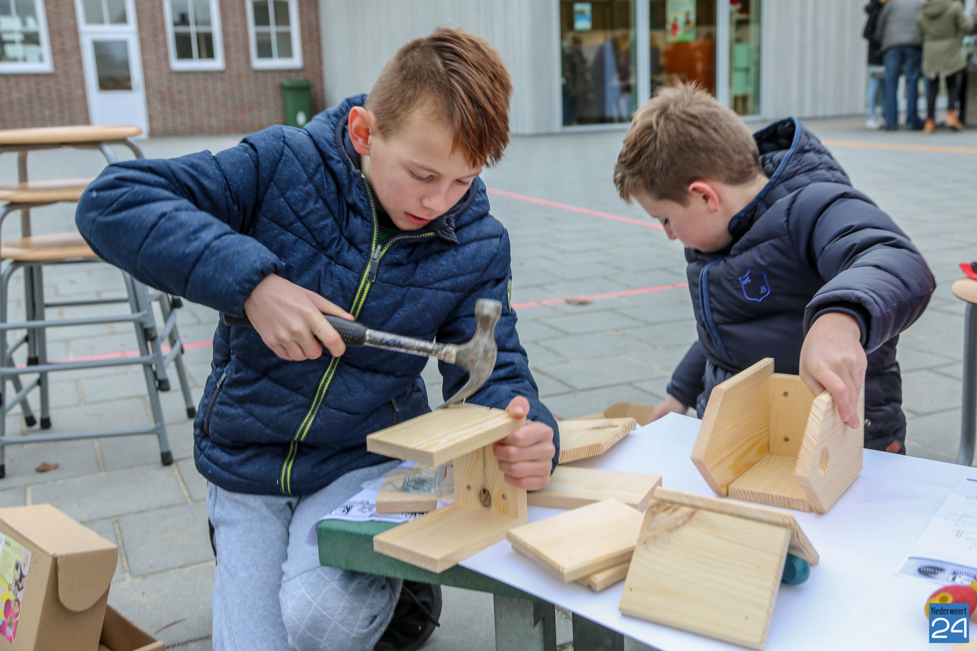 43 kinderen van basisschool Budschop zijn vrijdagmiddag aan de slag gegaan met het maken van nestkastjes. De kinderen uit de groepen 5 tot en met 8 zijn al enige tijd bezig met het project vogels. Er is bijvoorbeeld onlangs een gastles geweest. Dit alles is in samenwerking met de projectgroep van Kanaalpark De Heerlijckheid.