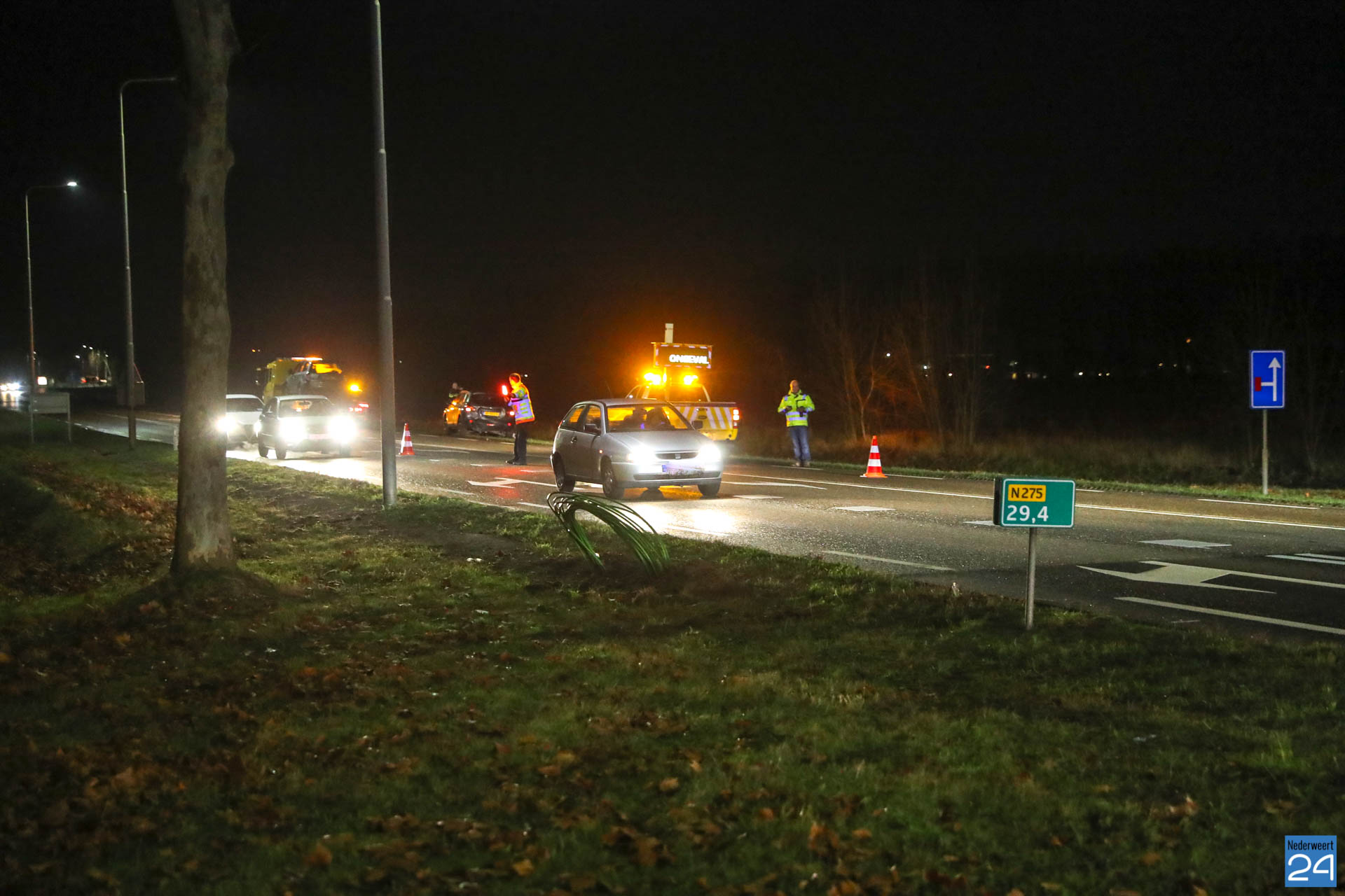 Maandagavond zijn drie personenauto’s met elkaar in botsing gekomen op de Randweg Zuid bij Nederweert. Hierbij raakte niemand gewond.