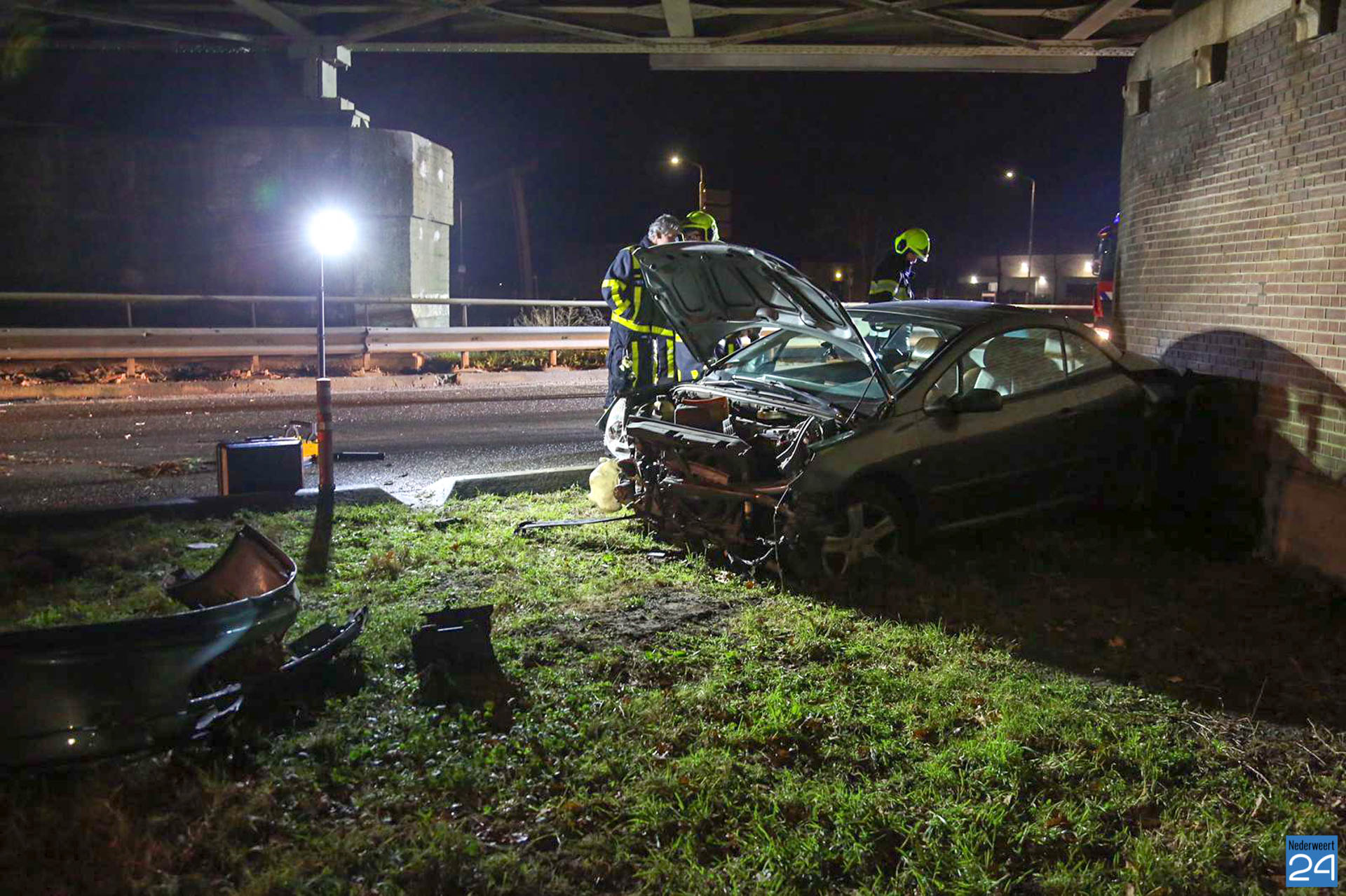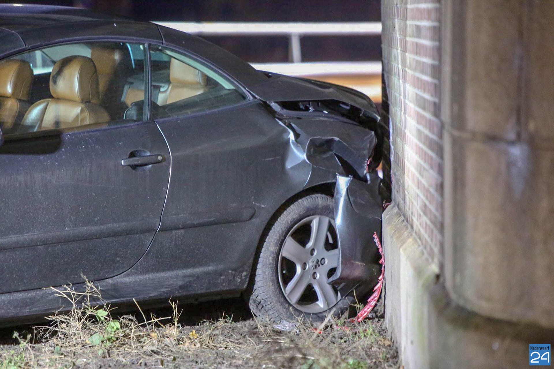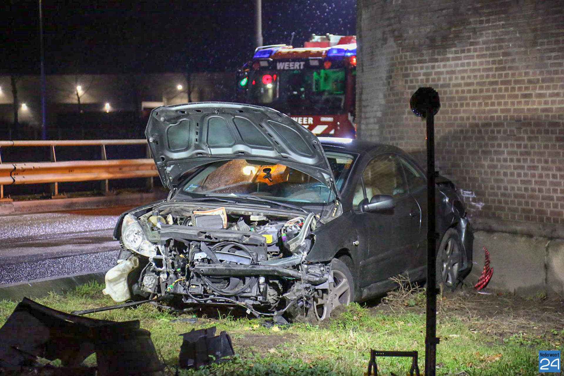 De auto reed vanuit Weert richting België. Voor het spoorviaduct raakte de auto de vangrail. Na de klap vloog het voertuig tegen het spoorviaduct. Een persoon raakte gewond en is naar het ziekenhuis gebracht.
