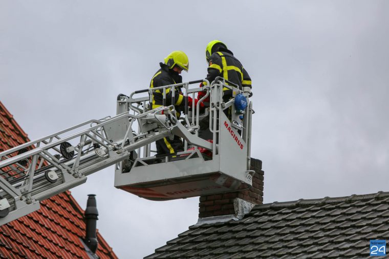 De brandweerlieden hebben met behulp van een ladderwagen het schoorsteenkanaal geveegd. Of er ook daadwerkelijk brand is geweest in de schoorsteen is niet bekend.