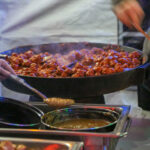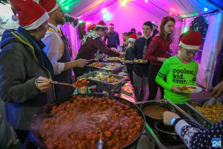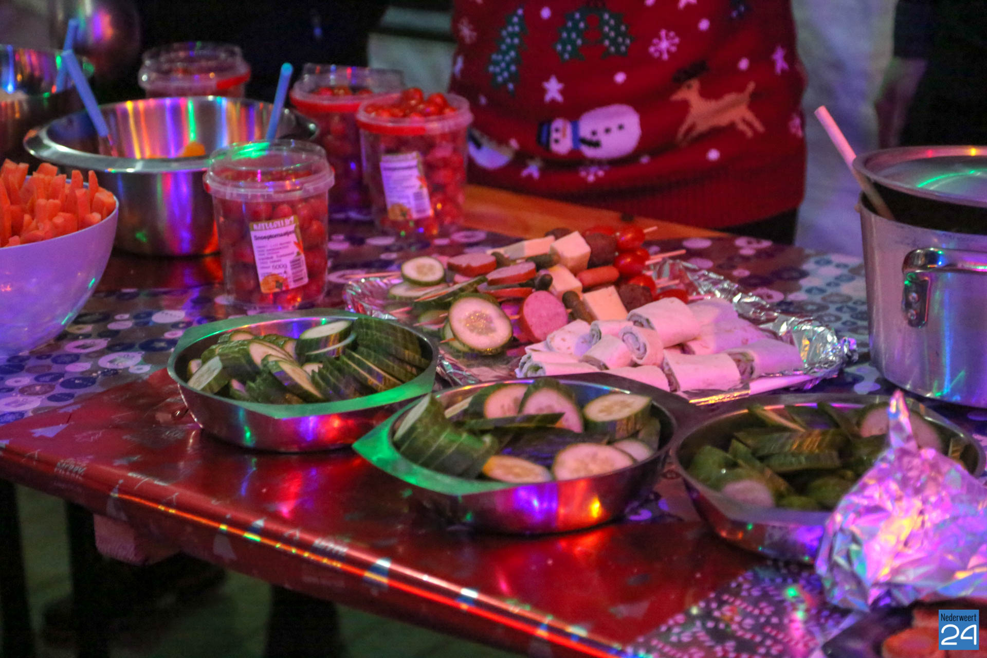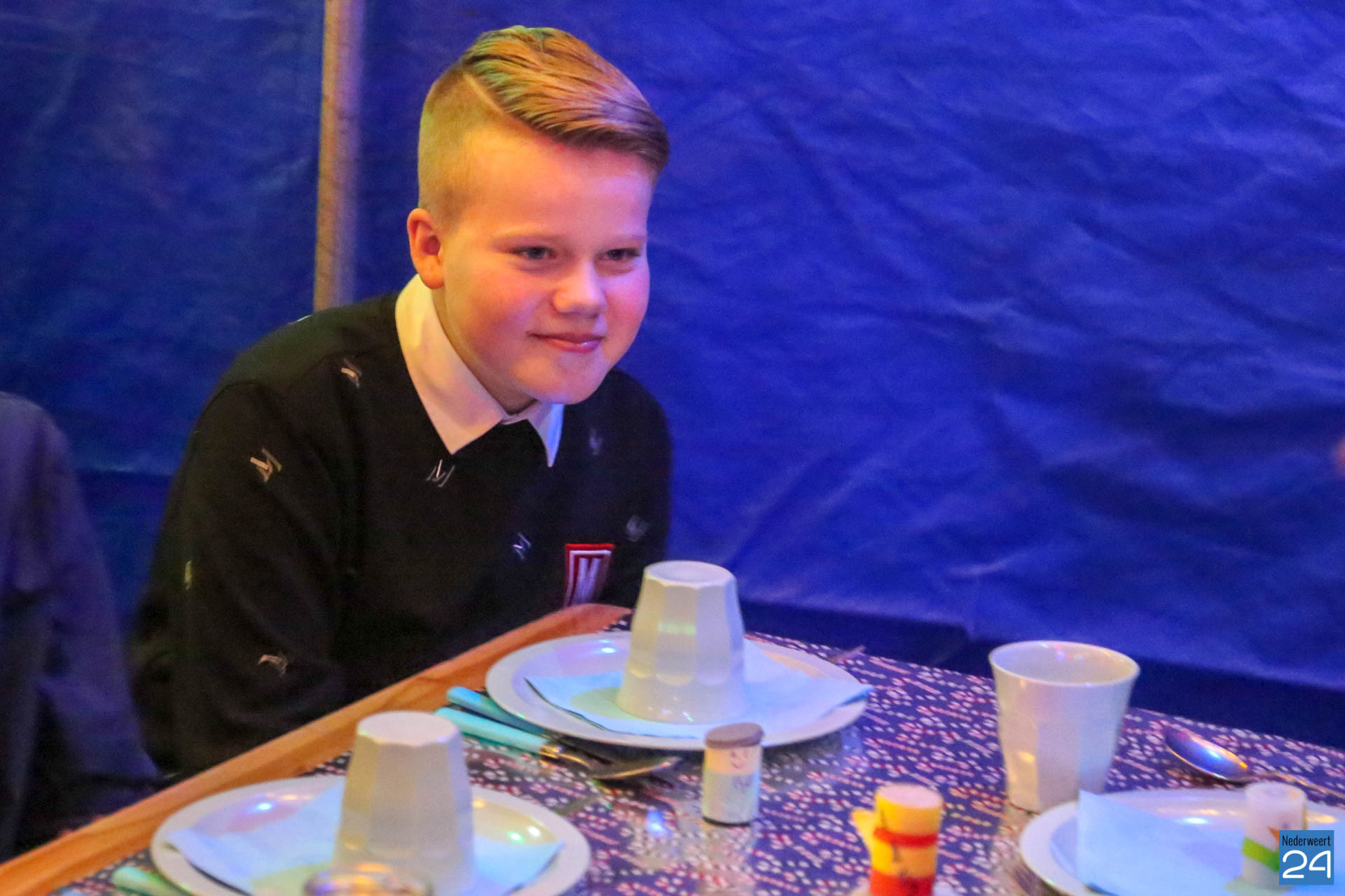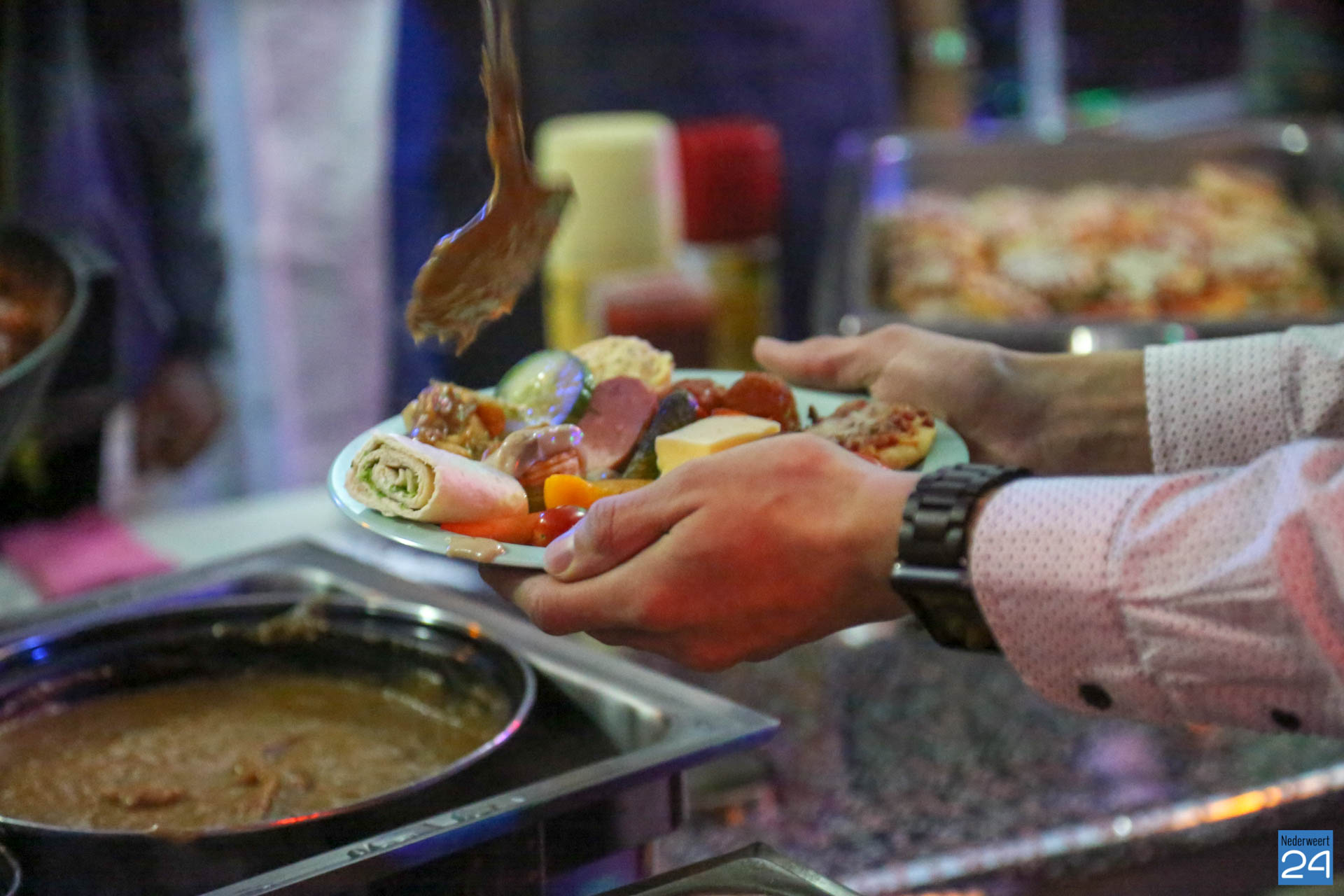 Vooraf een stokje met fruit, vlees en rauwkost en een wrap. Daarna een overheerlijke soep. Het hoofdgerecht bestond uit gehaktballetjes, kip, aardappels in drie soorten, boontjes, pizza en nog veel meer. De kinderen smulden van al dat lekkers.