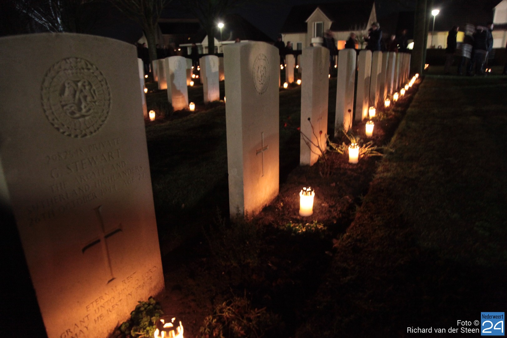 Vanavond, kerstavond, werd voor de derde keer op het Nederweert War Cemetery in Nederweert kaarsjes aangestoken. Met het branden van deze kaarsjes worden de militairen die ruim zeventig jaar geleden zijn omgekomen voor de bevrijding van ons land herdacht. De burgemeester heeft het eerste kaarsje aangestoken, daarna werden de overige graven verlicht. Ruim 200 mensen waren aanwezig.