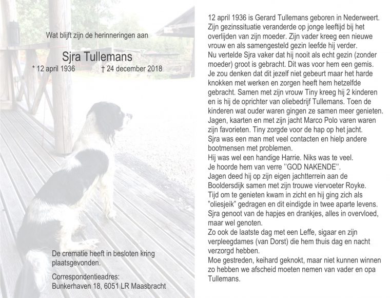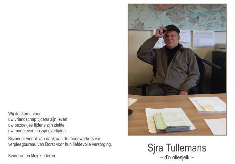 Overlijdensbericht: Sjra Tullemans