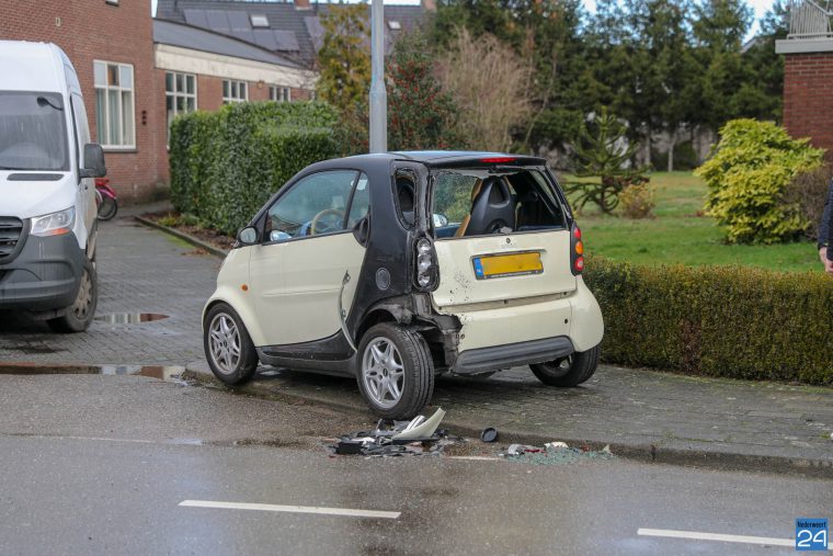 De bestuurder van de bestelbus heeft waarschijnlijk een stuurcorrectie gemaakt nadat hij een dier de weg zag oversteken. Hierdoor knalde hij achter op de geparkeerde auto ter hoogte van H&H Koopjes.
