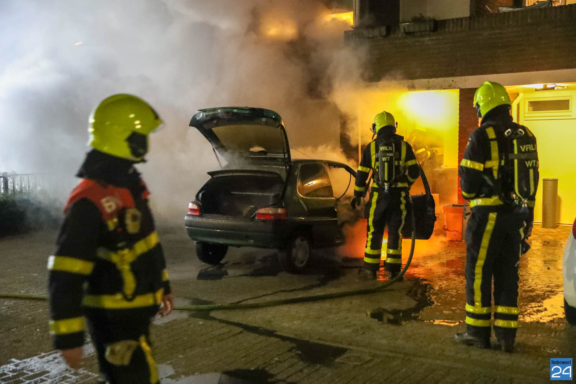 De personenauto stond op de oprit, vlak tegen de woning aan. Bewoners hadden de brand ontdekt en hebben zelf nog geprobeerd de brand te blussen. De brandweer was snel ter plaatse en heeft voorkomen dat de woning ook vlam vatte.